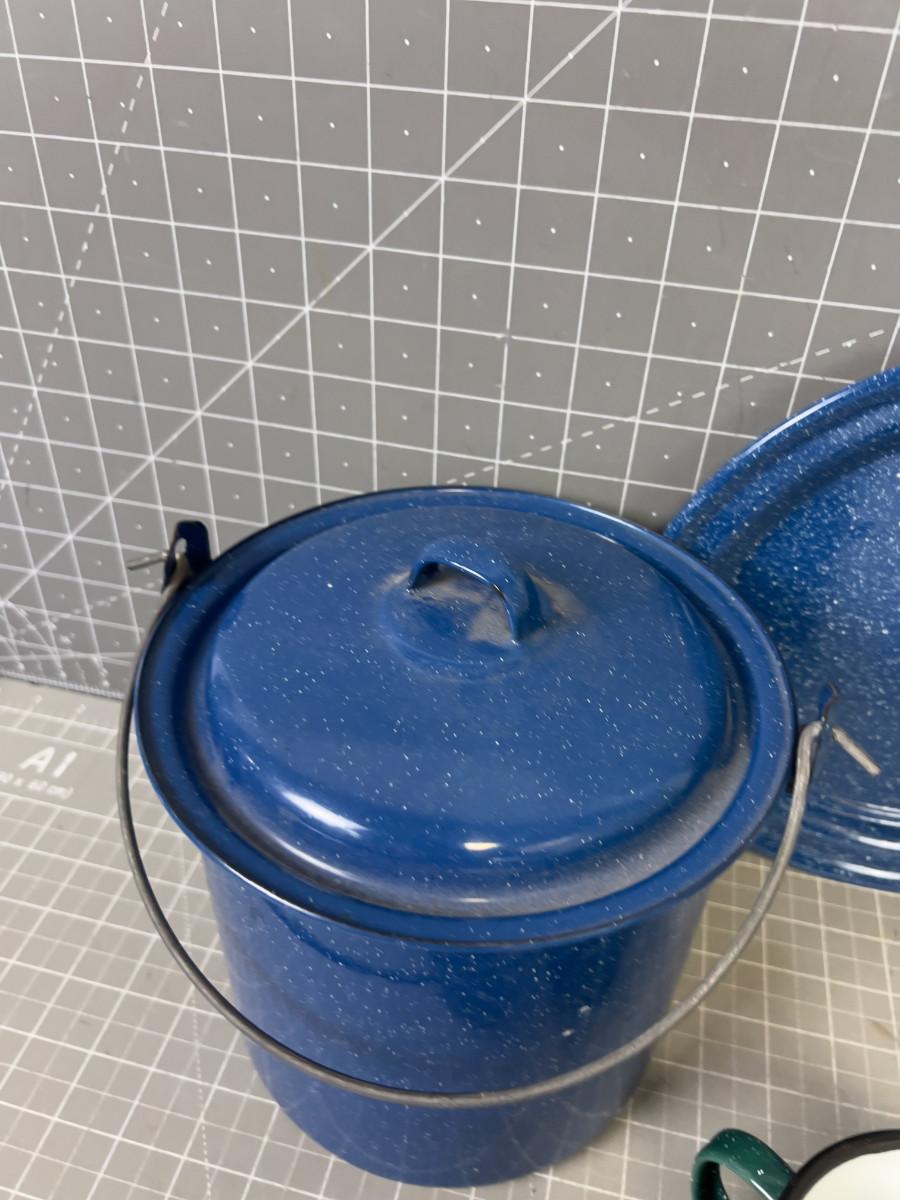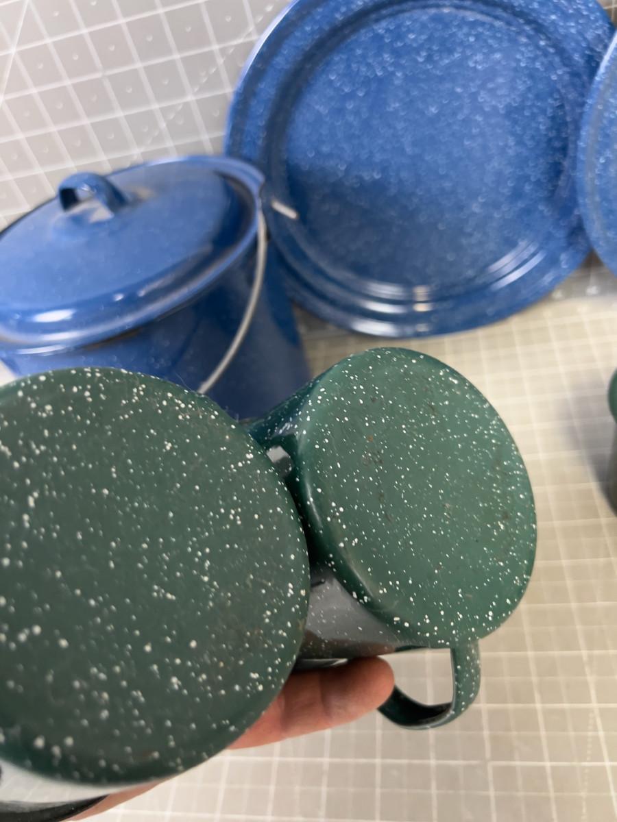Enamelware  Cups, Plates, Pot