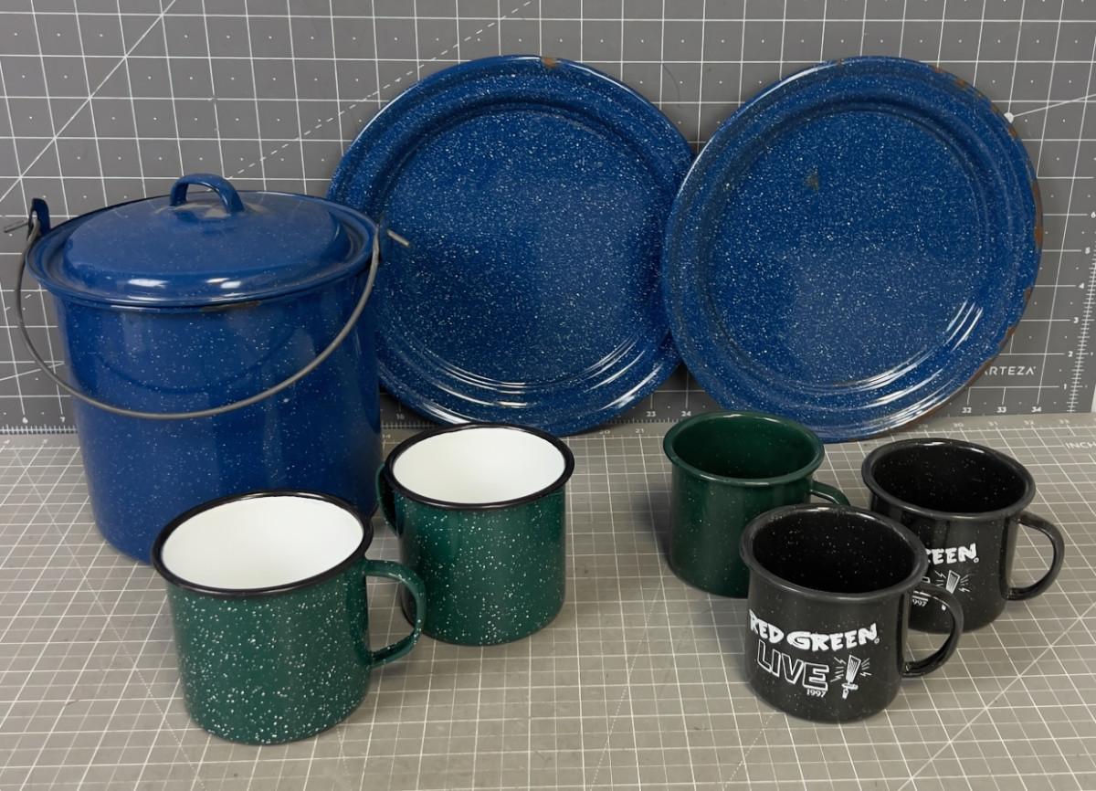 Enamelware Cups, Plates, Pot