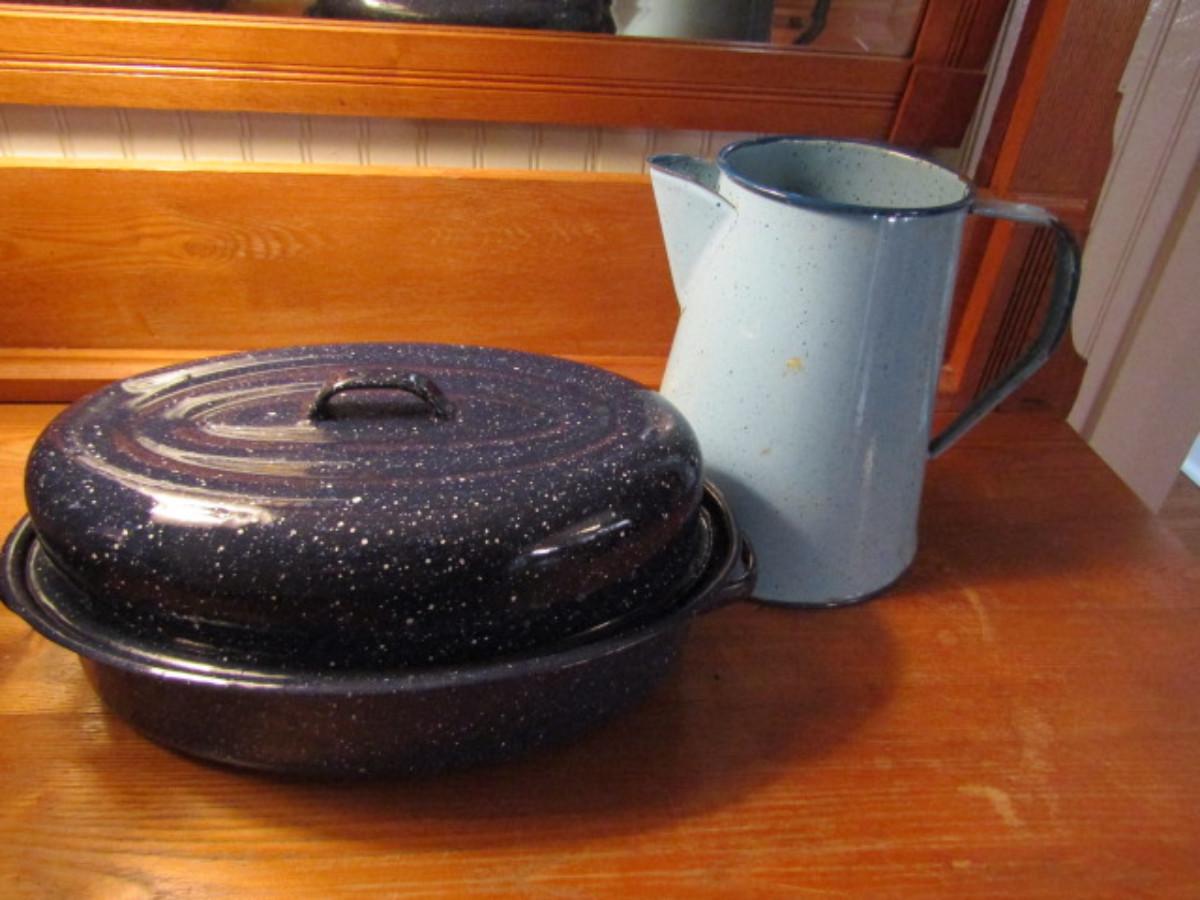 Enamelware Pieces- Roasting Pan with Lid and Pitcher