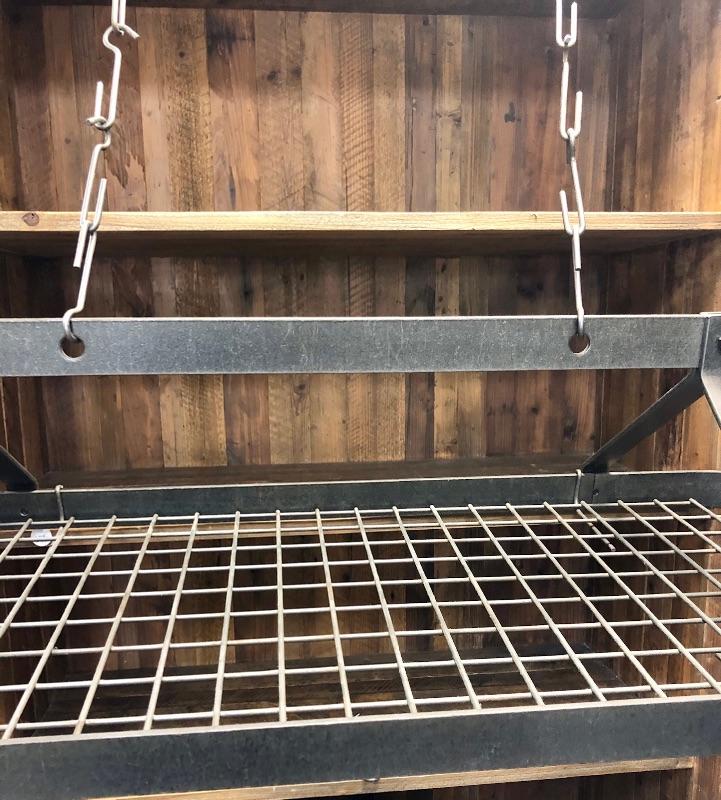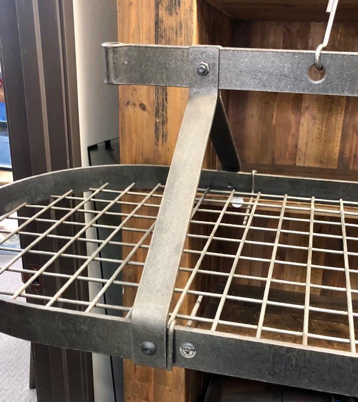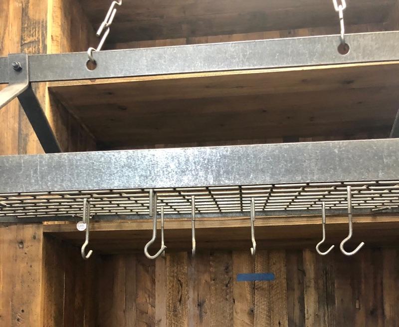Enclume steel hanging pot rack with hooks. Heavy duty rack. Oval shape, roughly 60" in length. LOCAL PICK UP ONLY.