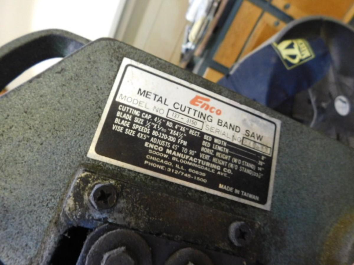 Enco Metal Cutting Band Saw Model 137 appears to be in working condition.