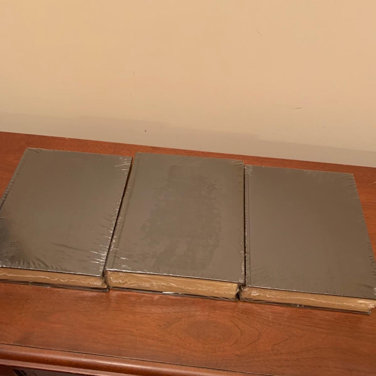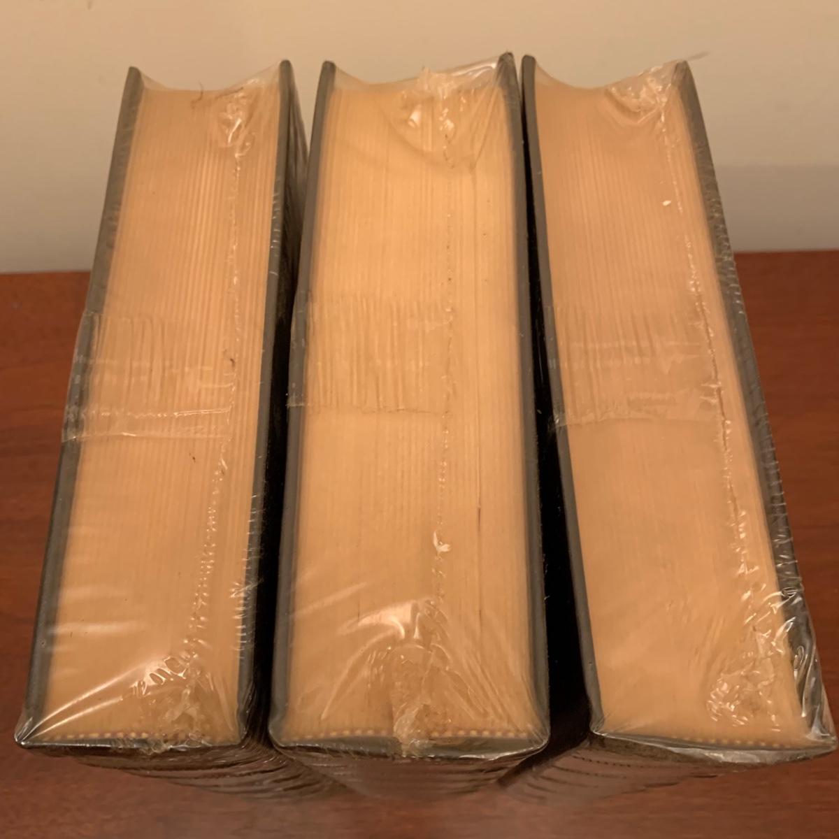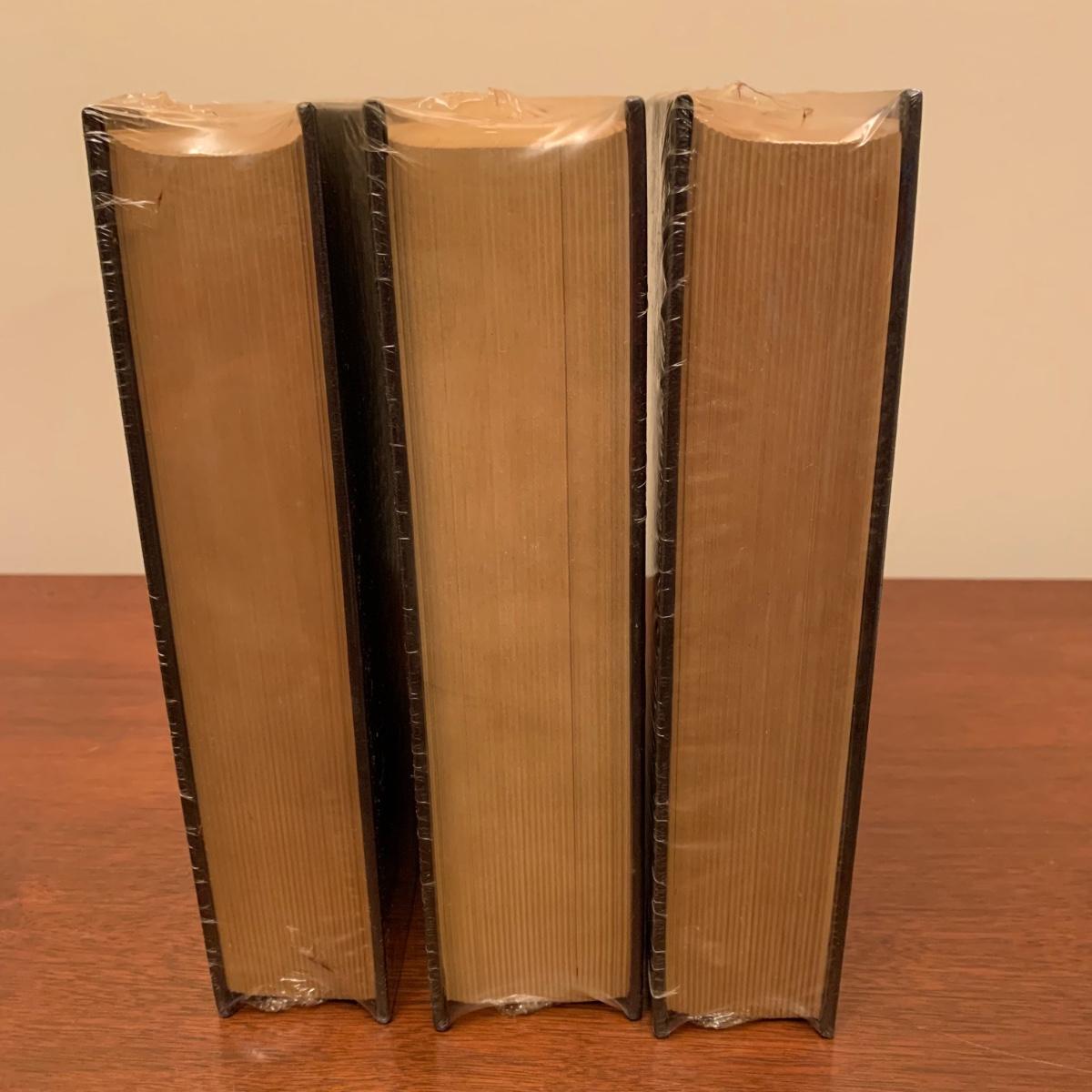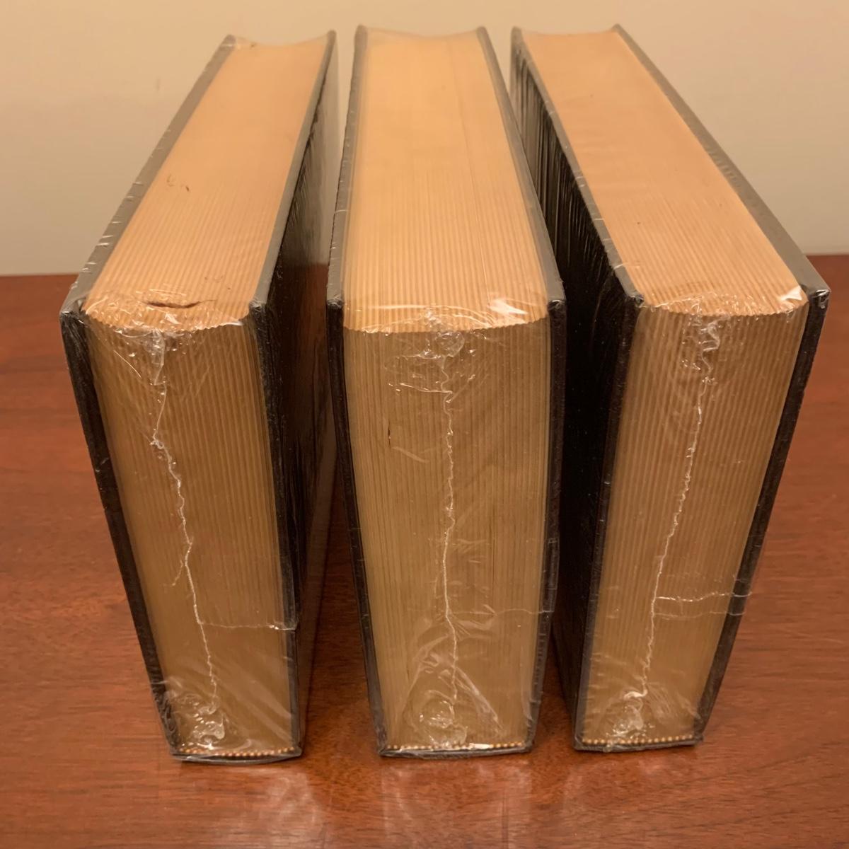 Encyclopædia Britannica hardcover three volume set, unopened as they are each still wrapped in plastic. Each book is approximately 9” x 2.5” x 10.5”.