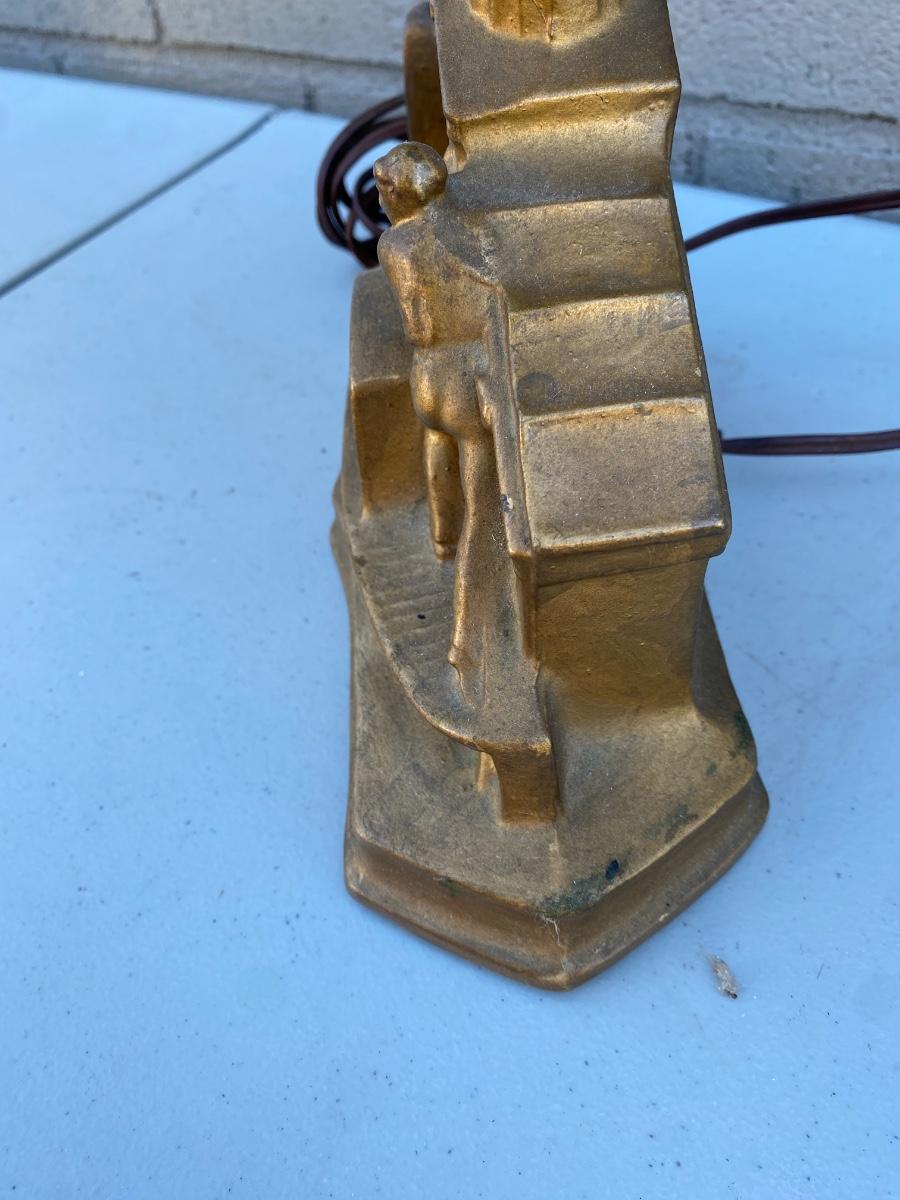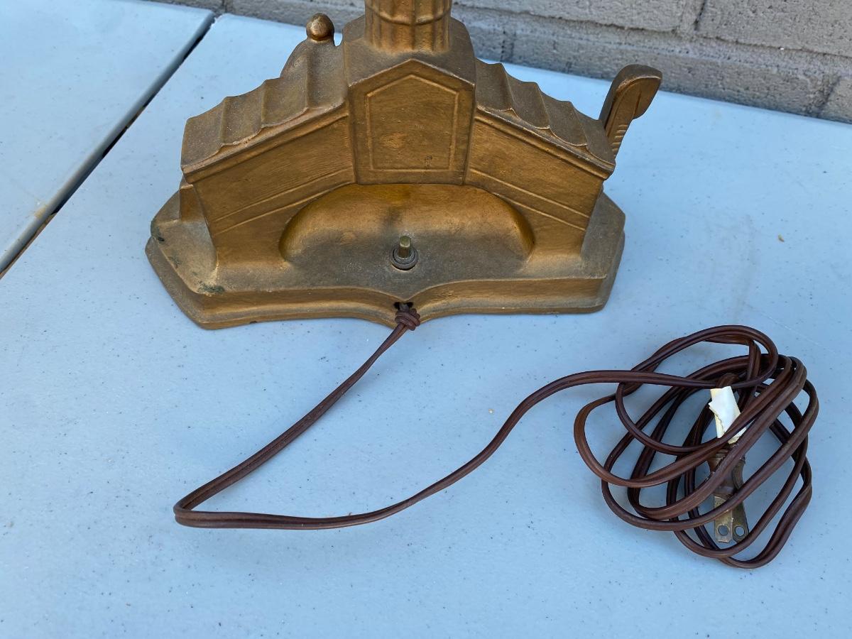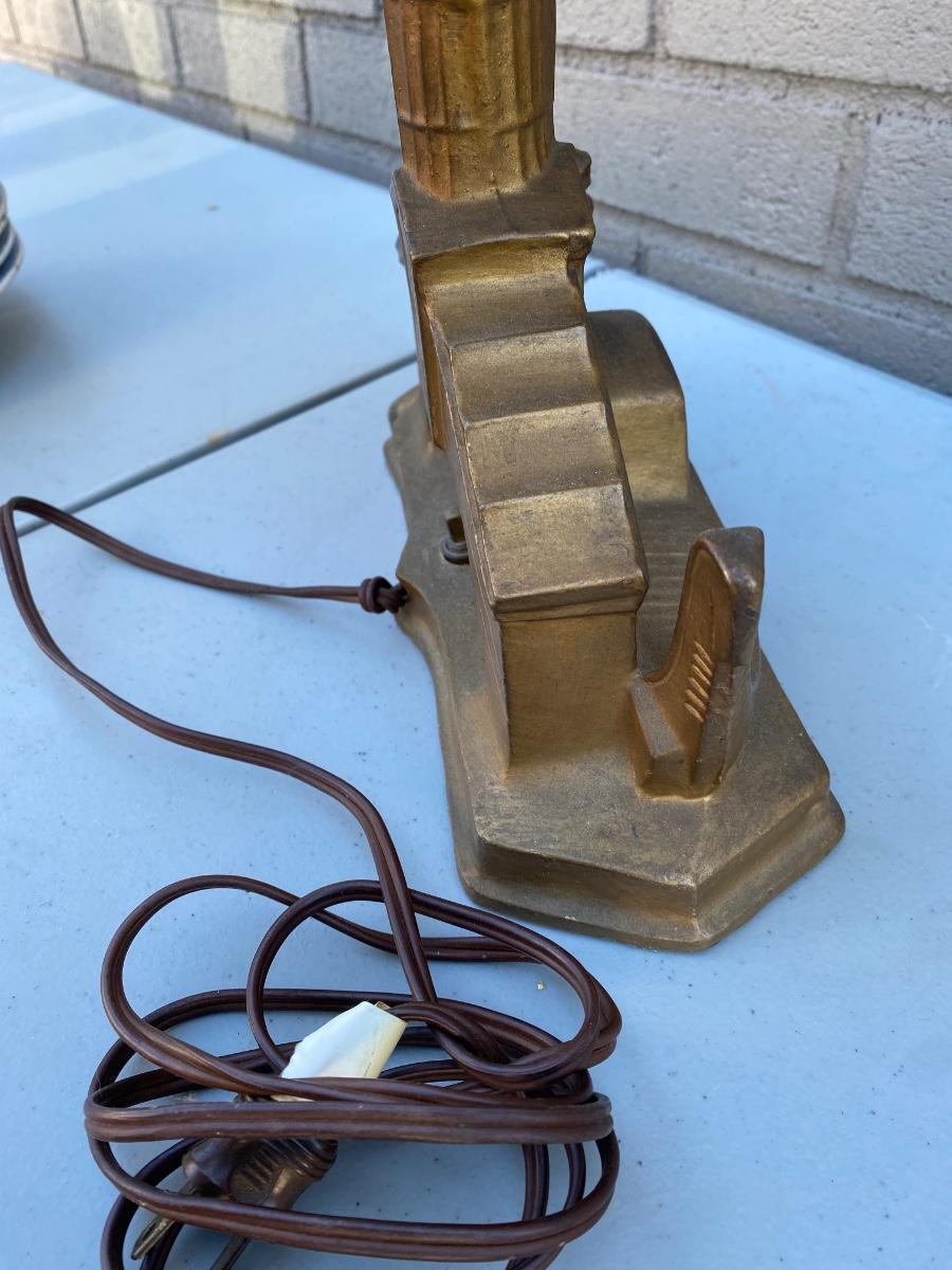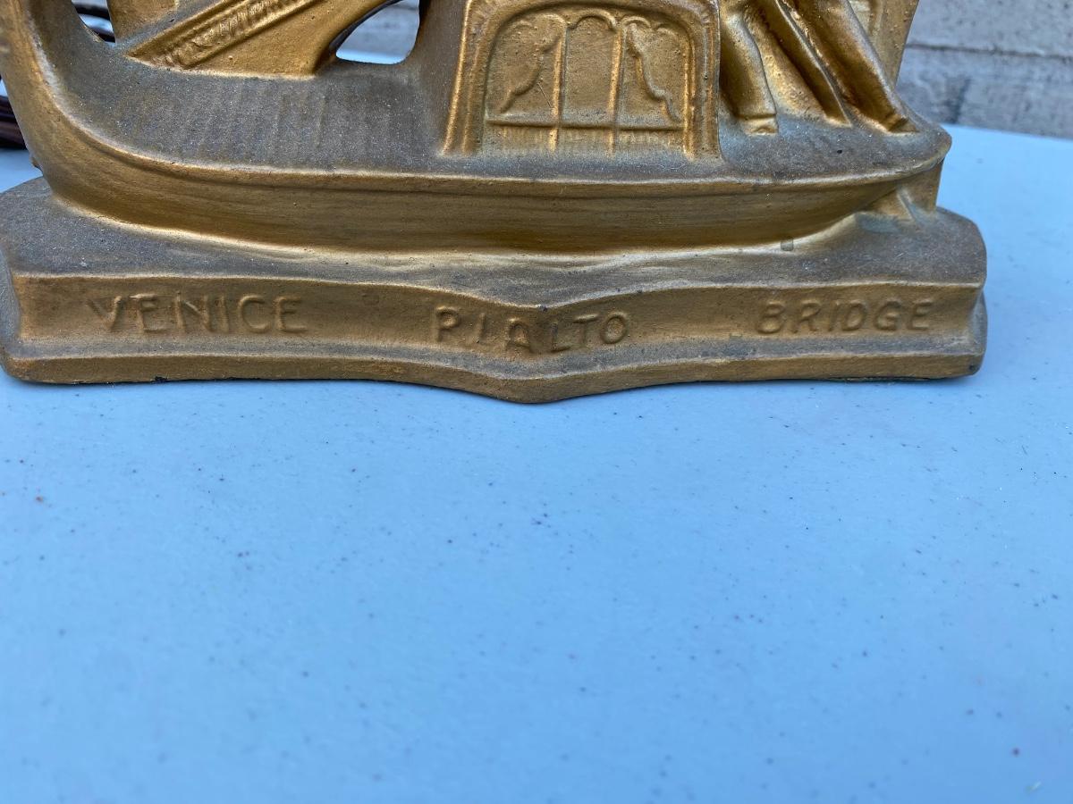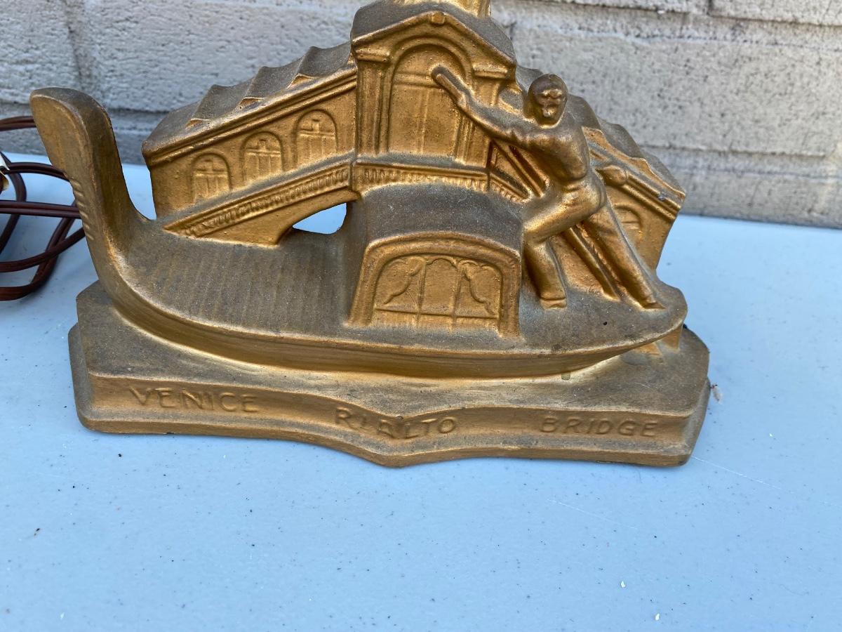 End of Day" Art Deco Glass Lamp, has VEnice Rialto Bridge base . Plug in with on off switch on base. Starburst multi colored glass glove. Beautiful lamp in excellent condition.