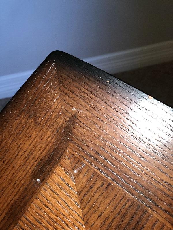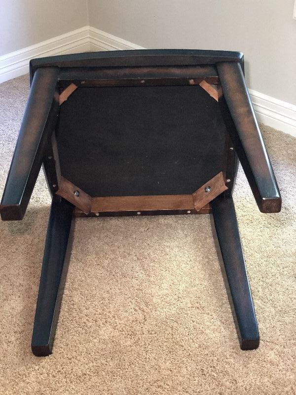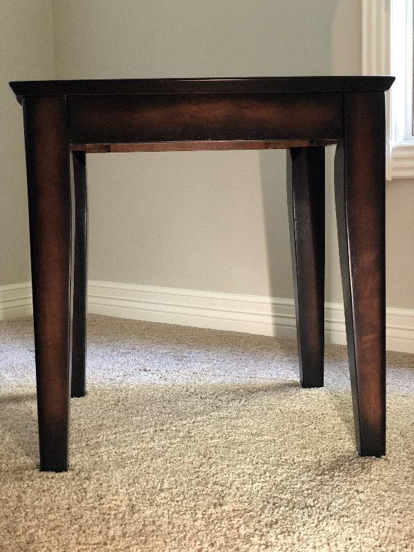 I vintage end table that stands 23 inches tall, the top measures 23.25 X 20.75. It has some wear and tear, please look to the pictures.