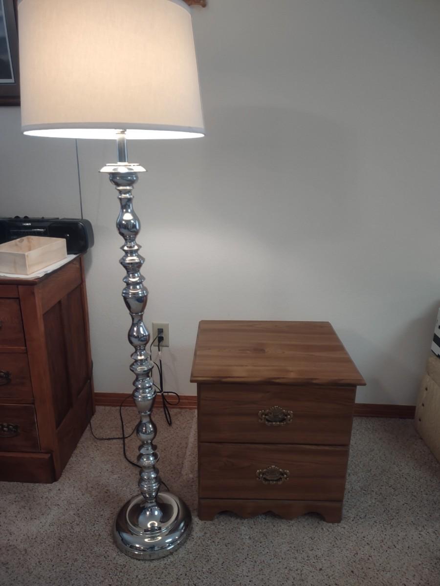 2 DRAWER NIGHT STAND AND A QUALITY FLOOR LAMP