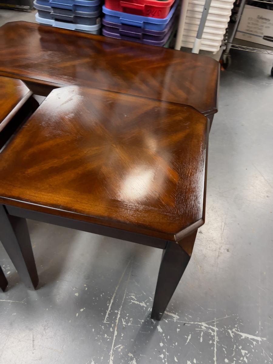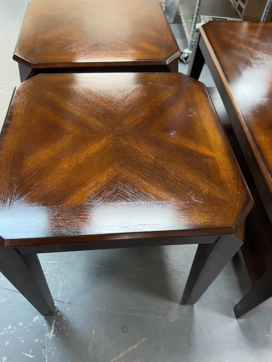 Good Condition. A bit of wear on top and slight damage to finish. Measure 21 x 21 x 23"