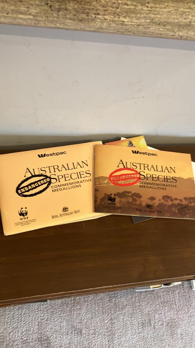 Each 27mm cupro-nickel medallion features exquisite obverse designs depicting the animals in their natural habitats, paired with reverse inscriptions honoring the bank's milestone and WWF's conservation mission. All profits from the original sales supported WWF's efforts to protect threatened wildlife. This set is housed in the original orange Westpac presentation folder, complete with accompanying WWF brochures, informational pamphlets, and protective sleeves—everything shown in the photos for authenticity and condition assessment.