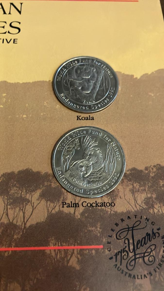 In uncirculated (UNC) condition with light toning from age, these are true collector's items blending numismatic history, environmental advocacy, and Australian heritage. Perfect for collectors of Royal Australian Mint issues, WWF memorabilia, or Westpac ephemera. A charitable piece of history that supported wildlife preservation from day one.