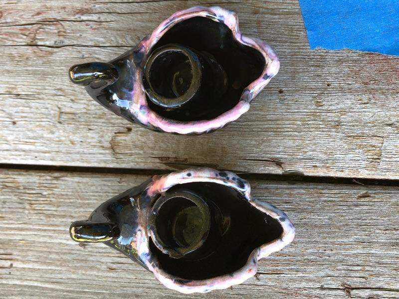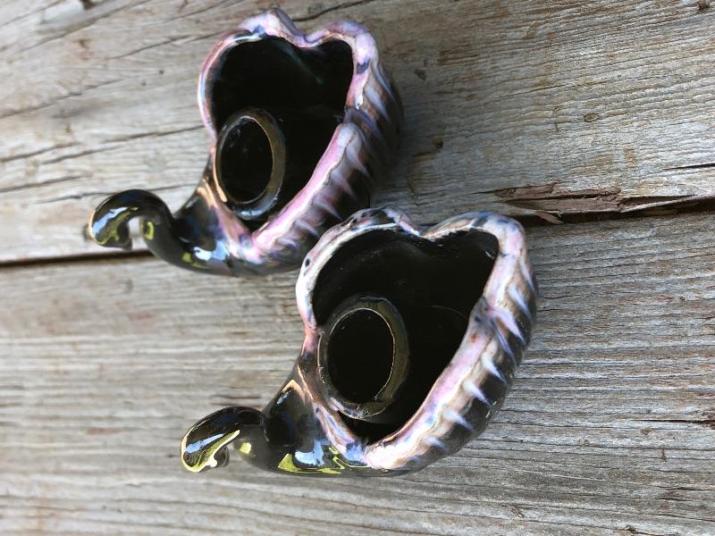 Vintage black swan candleholders by Enesco. Black with pink edging. Made in Japan.