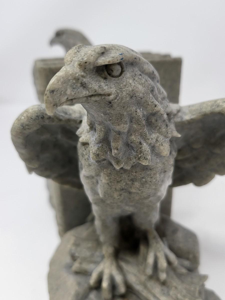 Eagle bookend pair. 1999 Enesco. 7" x 5" x 4". Grey stone composite.