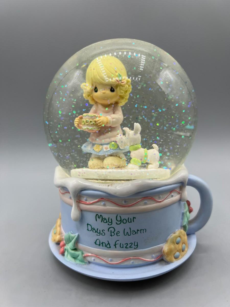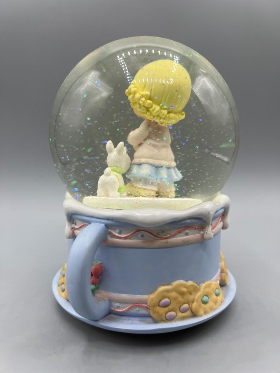 There is no significant damage to the snow globe and is in overall good displayable condition. Check pictures for more details and for sizing. The music box works perfectly.