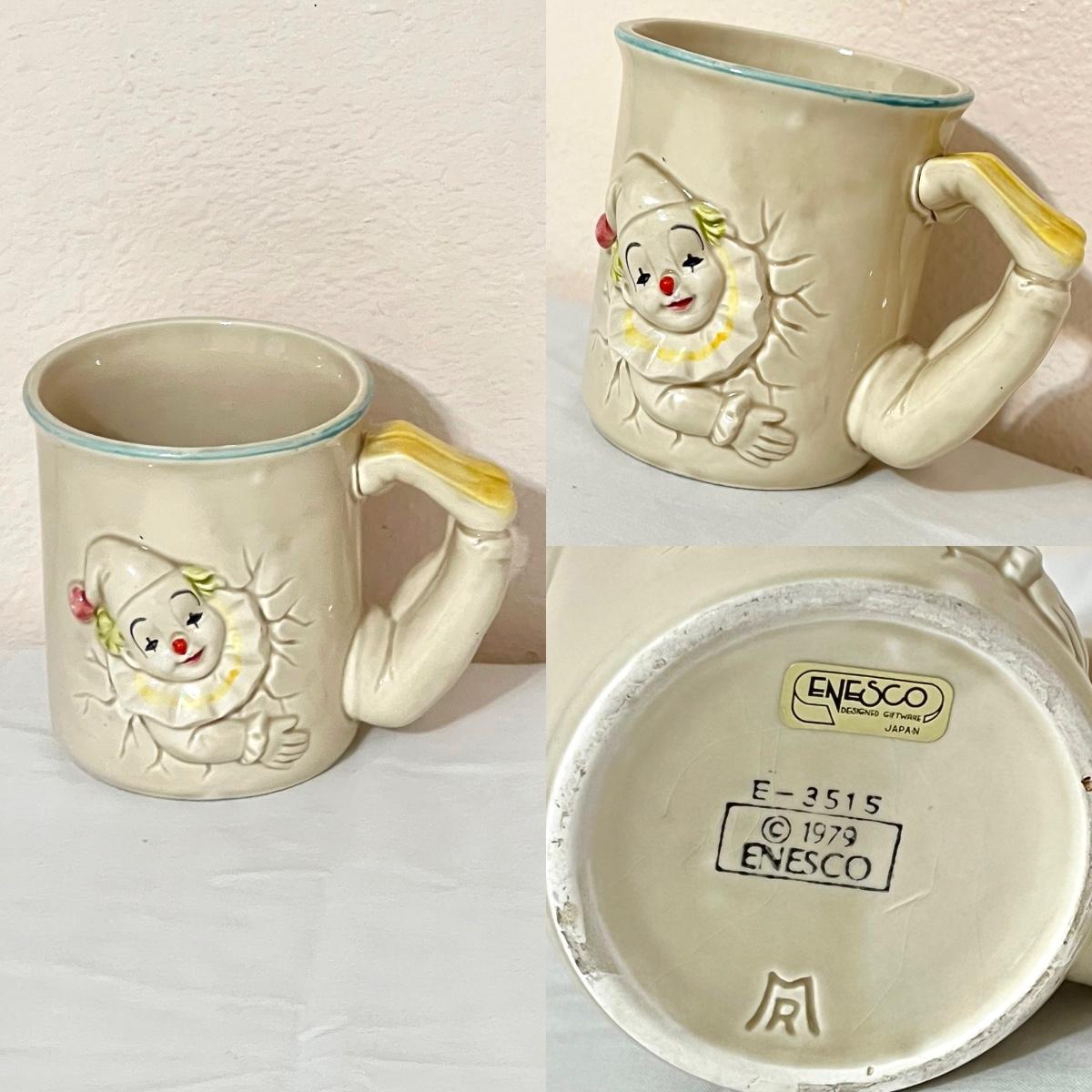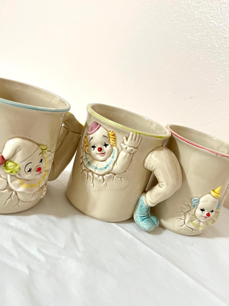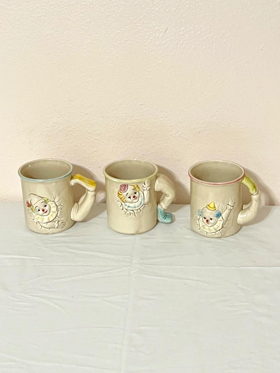 ENESCO ~ Vintage 1979 Clown Coffee Cups ~ Set of 3