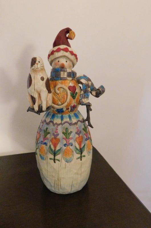Enesco Wooden Snow Man with Cat Heartwood Creek by Jim Shore with box