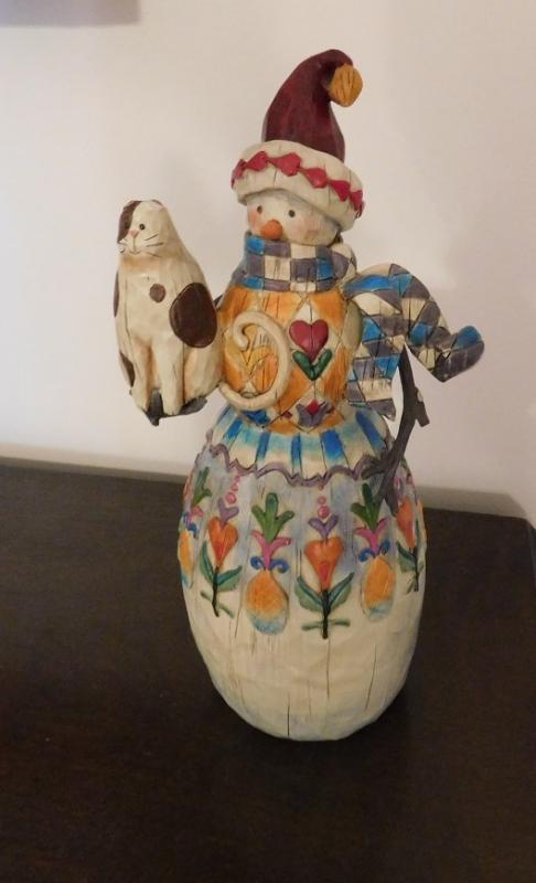 Enesco Wooden Snow Man with Cat Heartwood Creek by Jim Shore