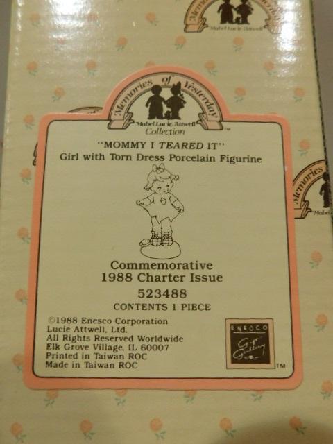 Enesco's 1988 Charter Issue Memories of Yesterday Mommy, I Teared It Porcelain Figurine with Box