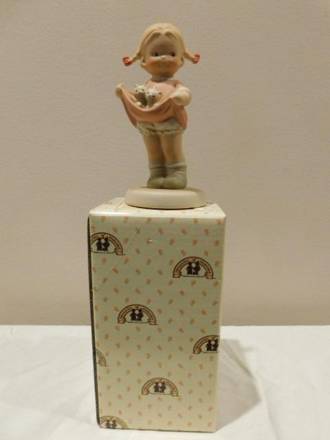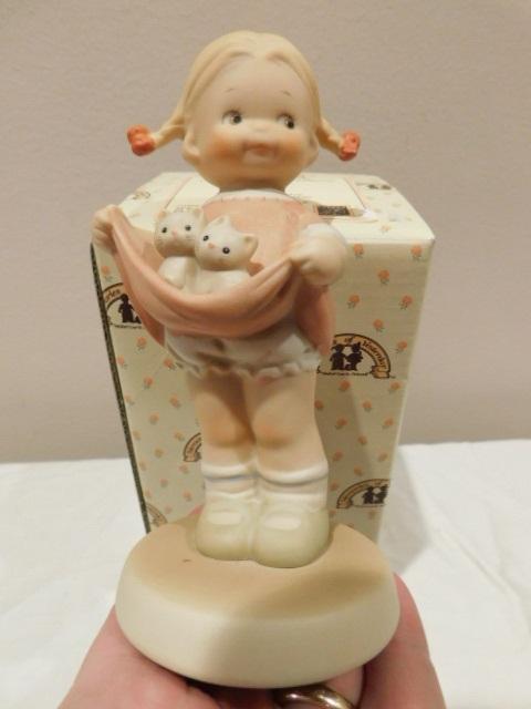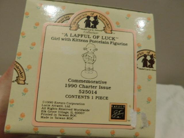 Enesco's 1990 Charter Issue Memories of Yesterday A Lap Full of Luck Porcelain Figurine with Box
