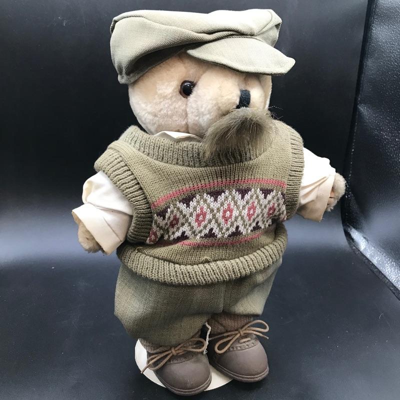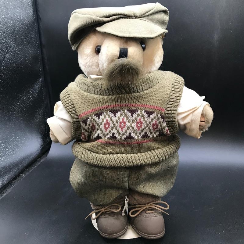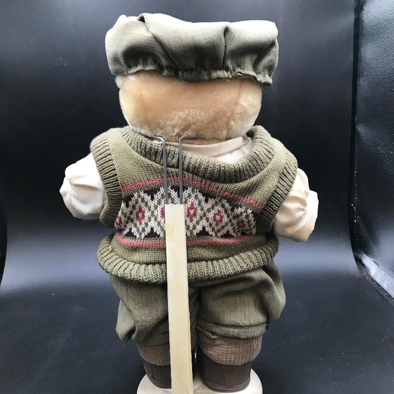 Includes metal stand. Bear stands 13” tall. unmarked except for “T.H.T. Made in China” on underside of shoe.