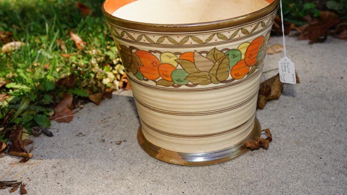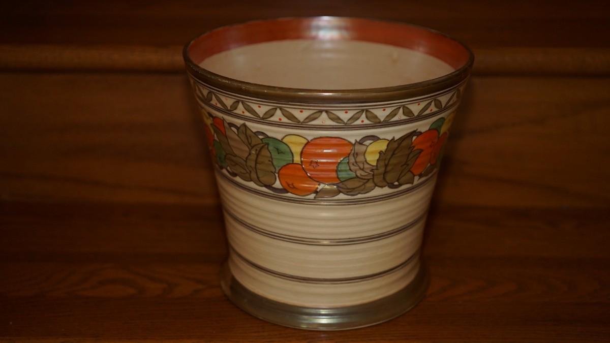 ENGLISH CROWN DUCAL JARDINERE OF COLORFUL FRUIT AND ENAMELLED ACCENT