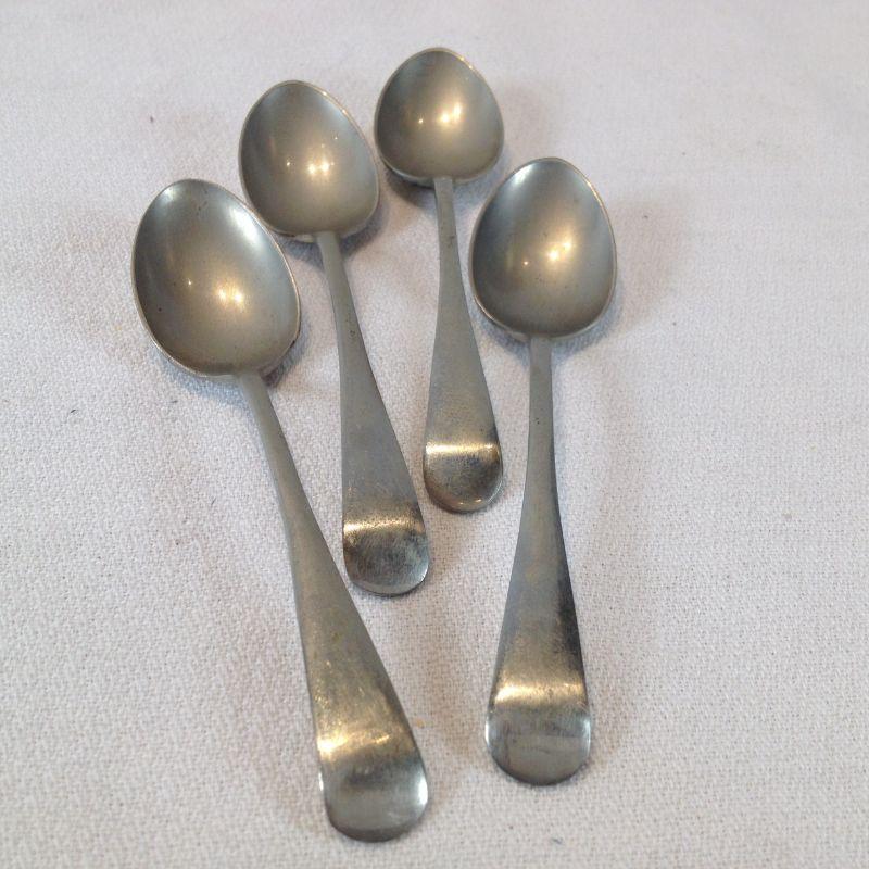 This lot is a set of 4 English Picnic Set Demitasse Spoons. Made by G. W. Scott 1851 of London. They are in very good condition, could use a nice polishing but will look nice laying on the edge of a demi-cup of hot English tea.