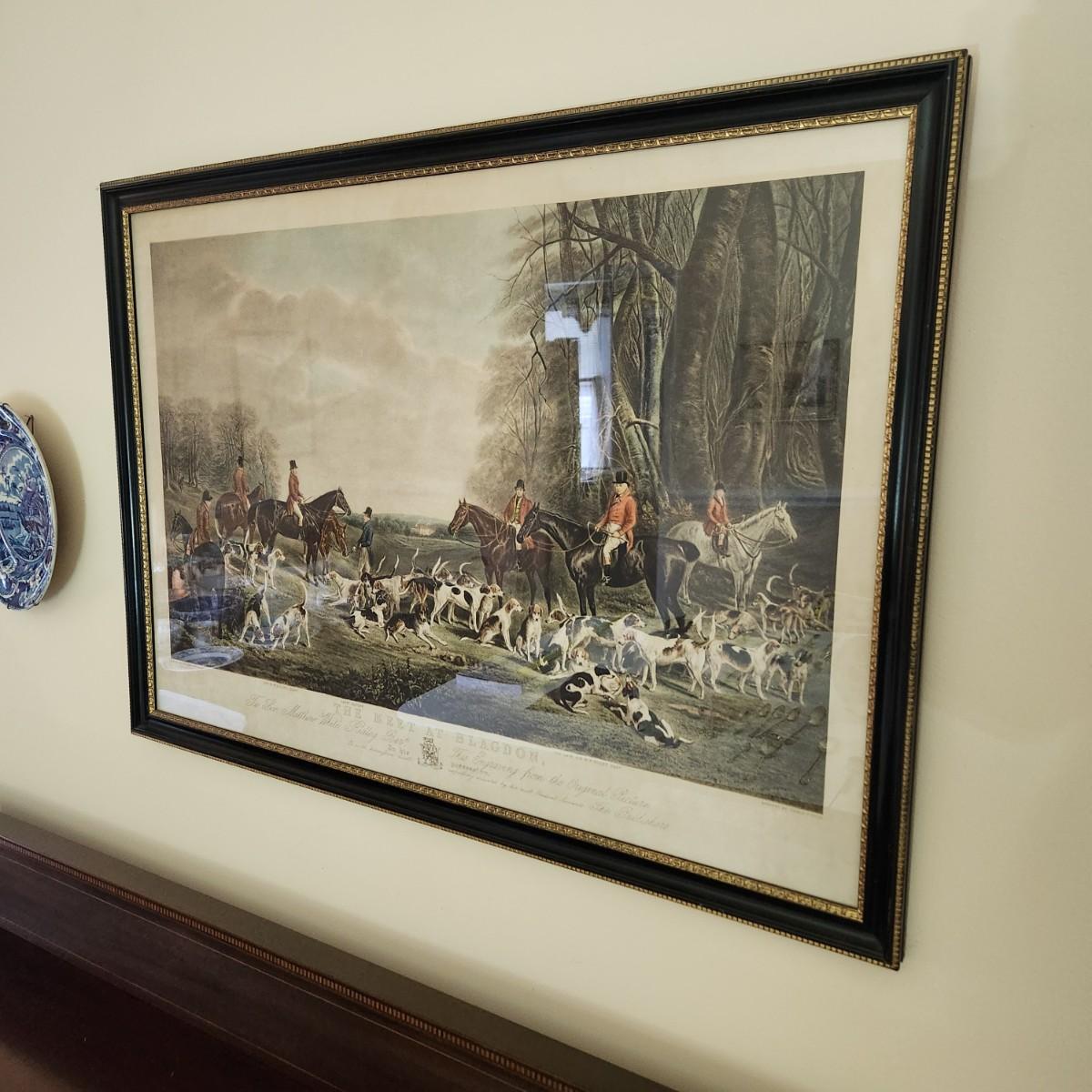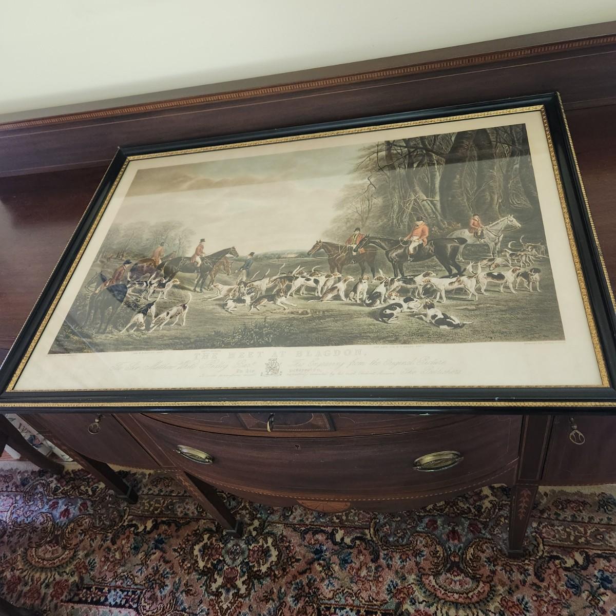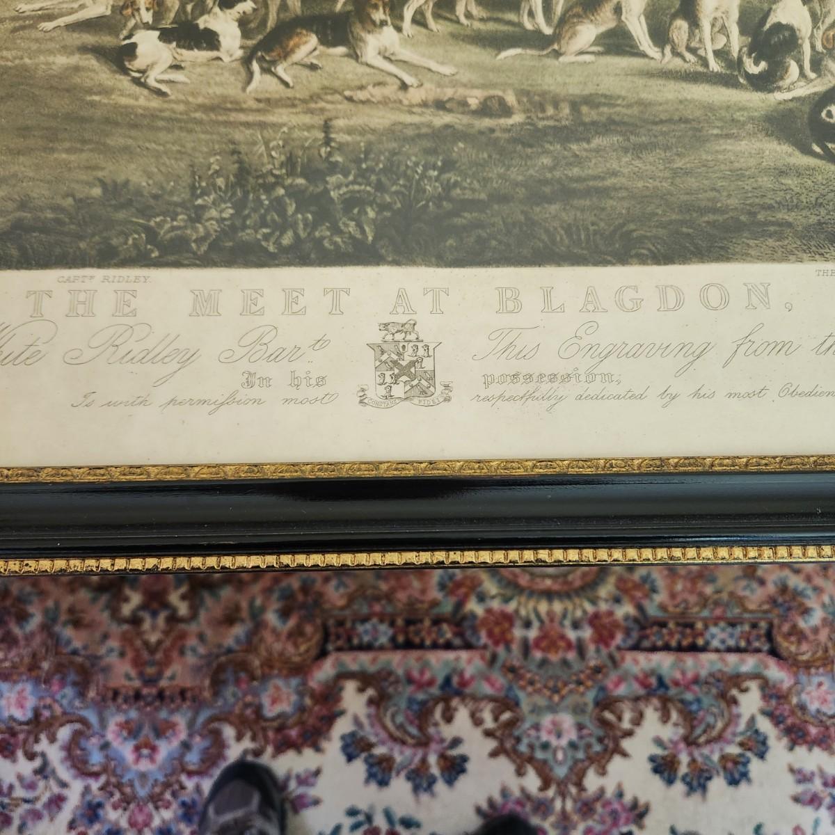 English Hunt Scene Engraving Framed The Meet at Blagdon 34x24