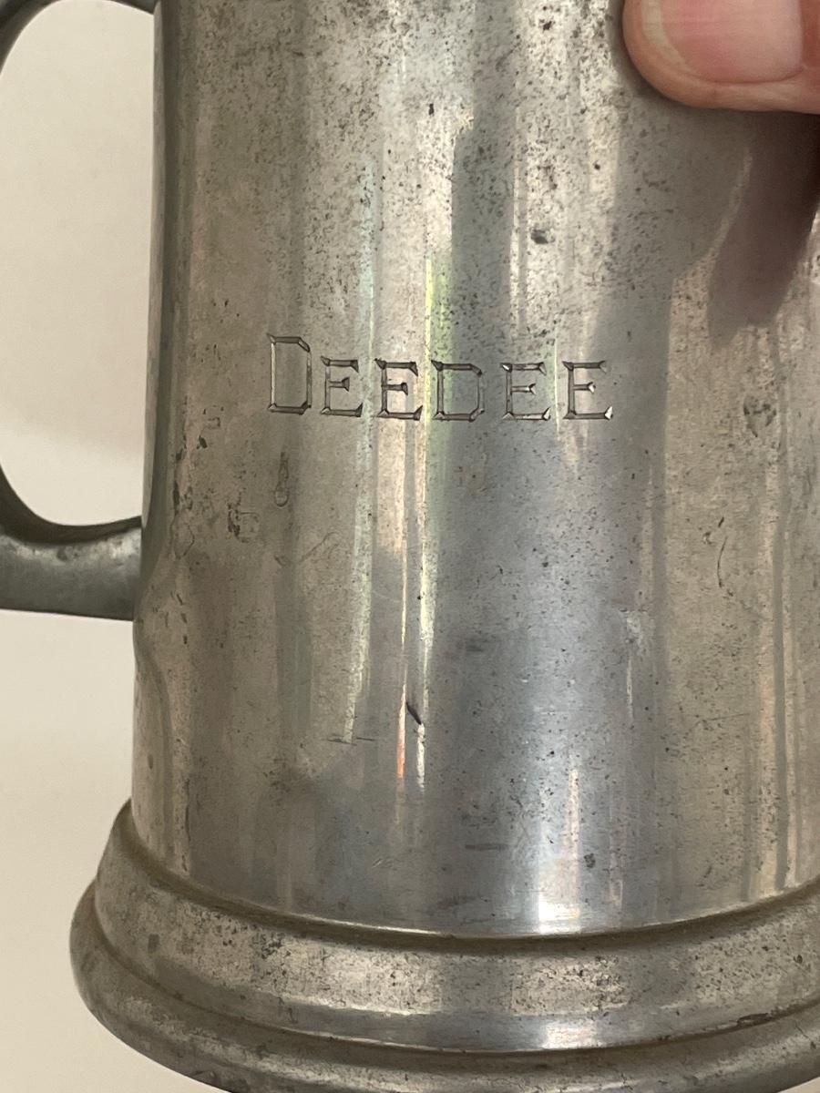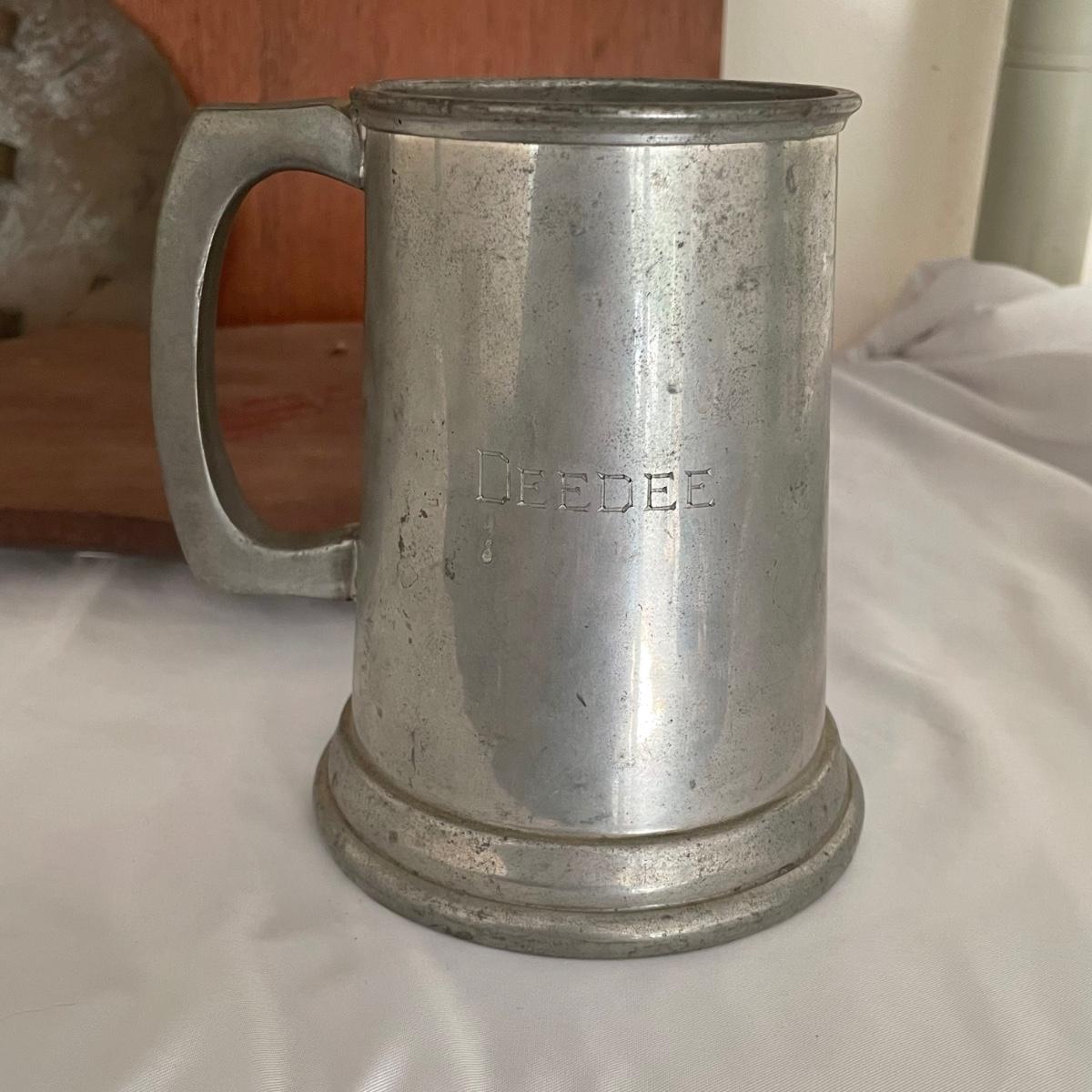 Tankard measures 3” d x 5.5” tall.