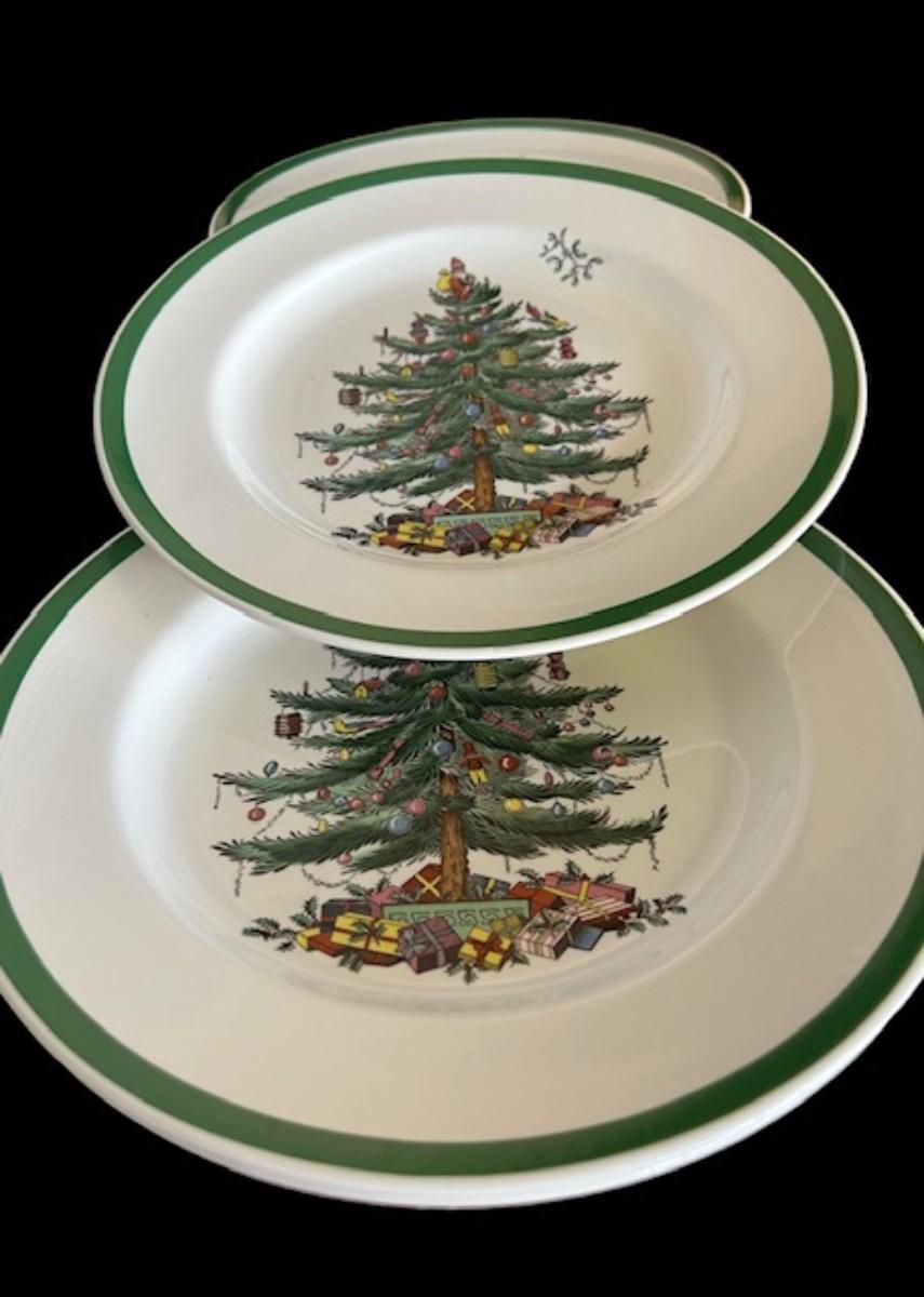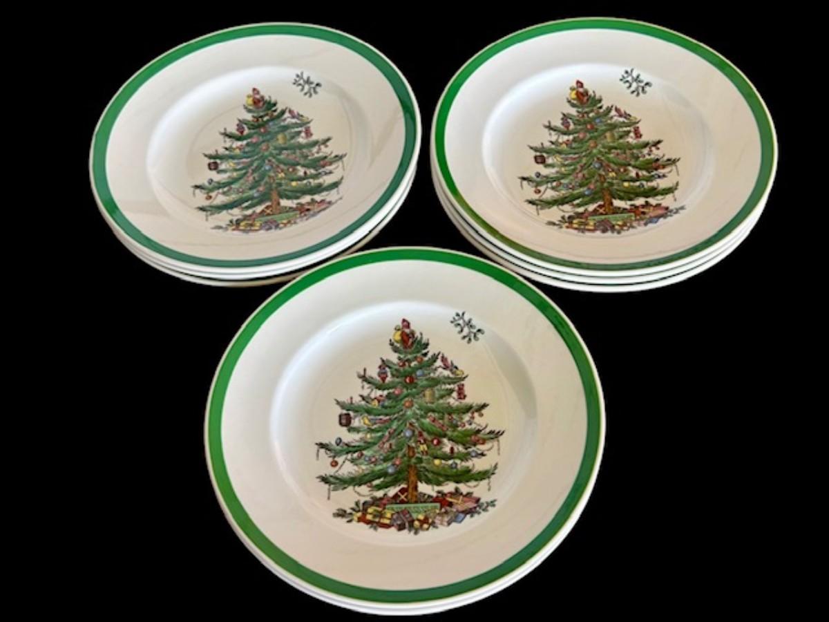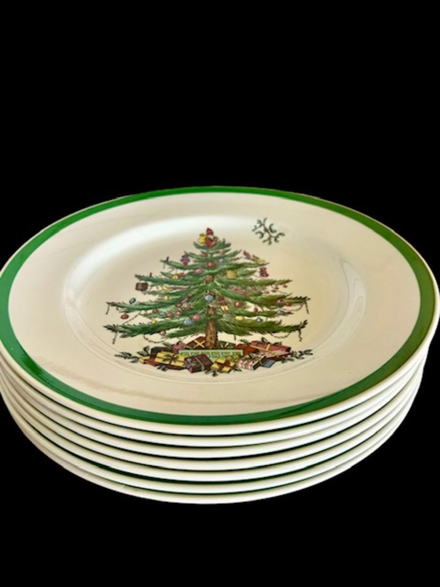 English Spode China Christmas Tree Pattern - Set of 7 Dinner Plates