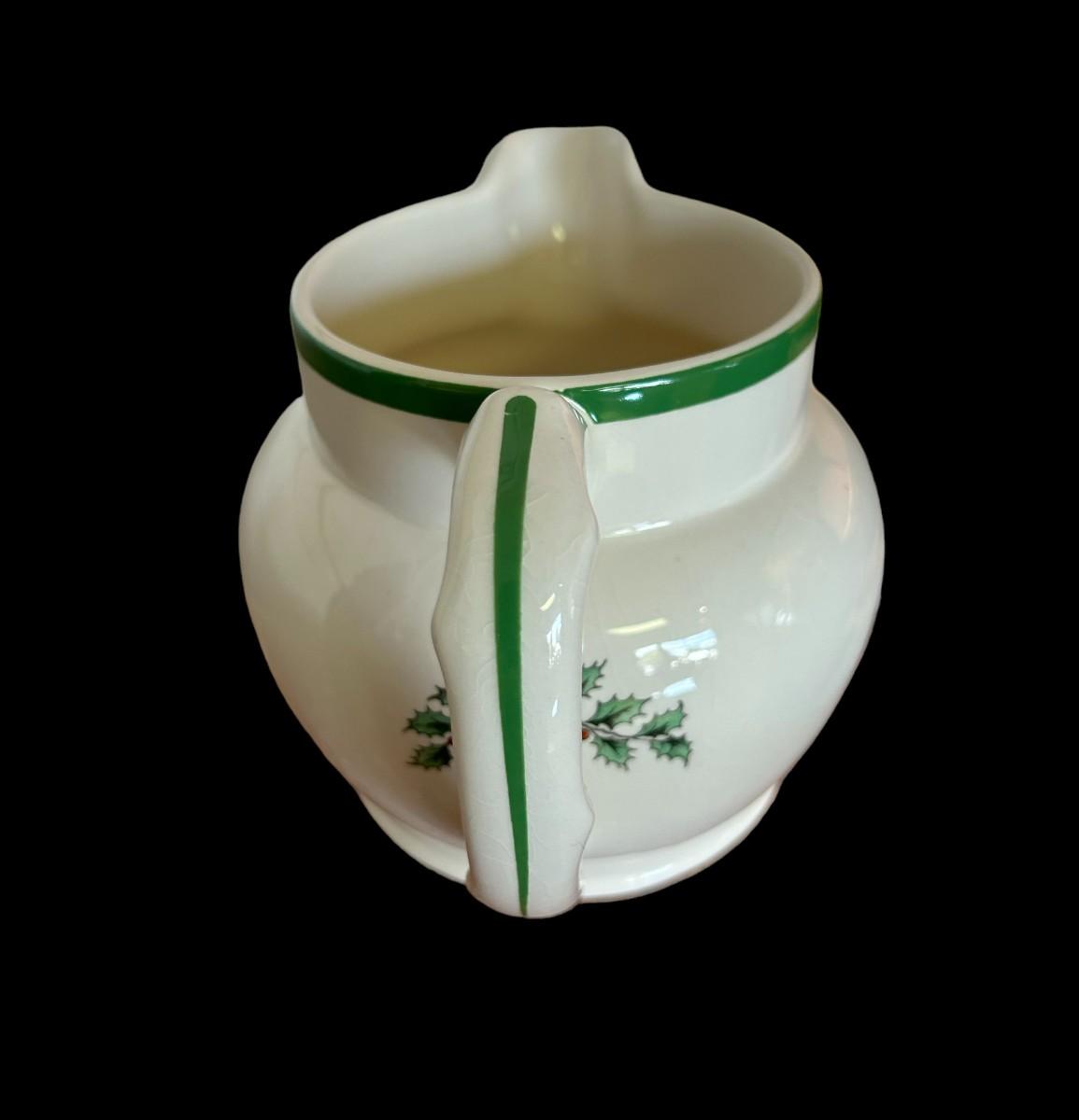 Condition: Good condition, some crazing, one small chip in green border around spout rim. Usable as is.