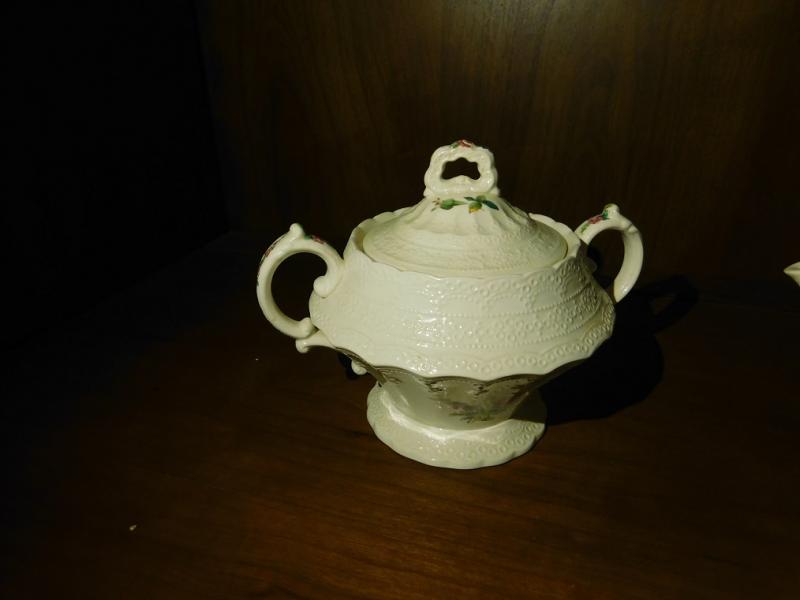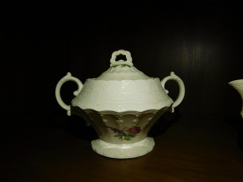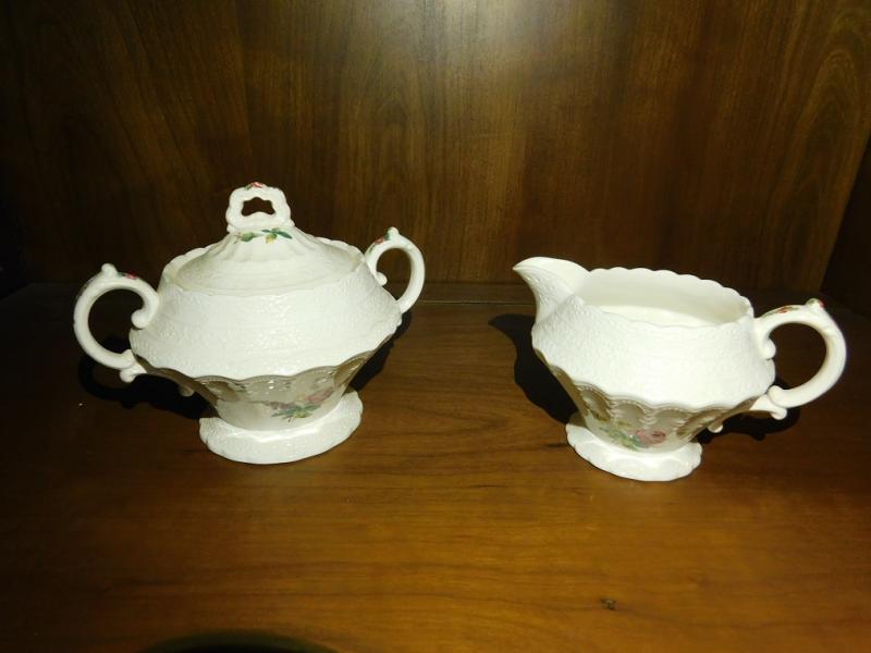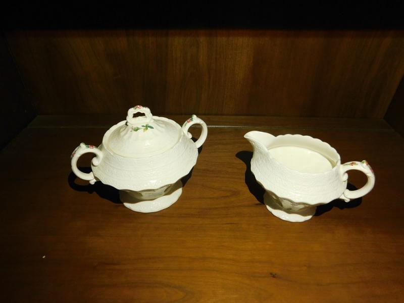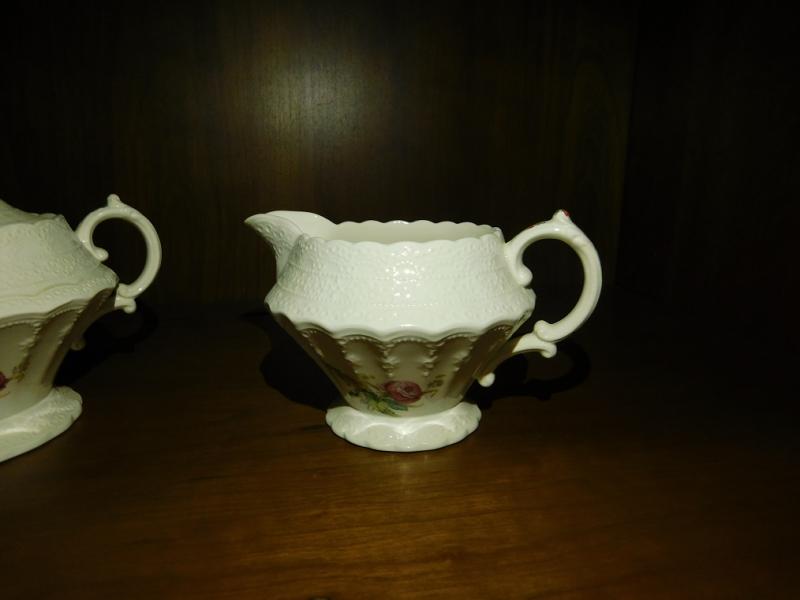 English Spode Heath and Rose Sugar and Creamer Set
