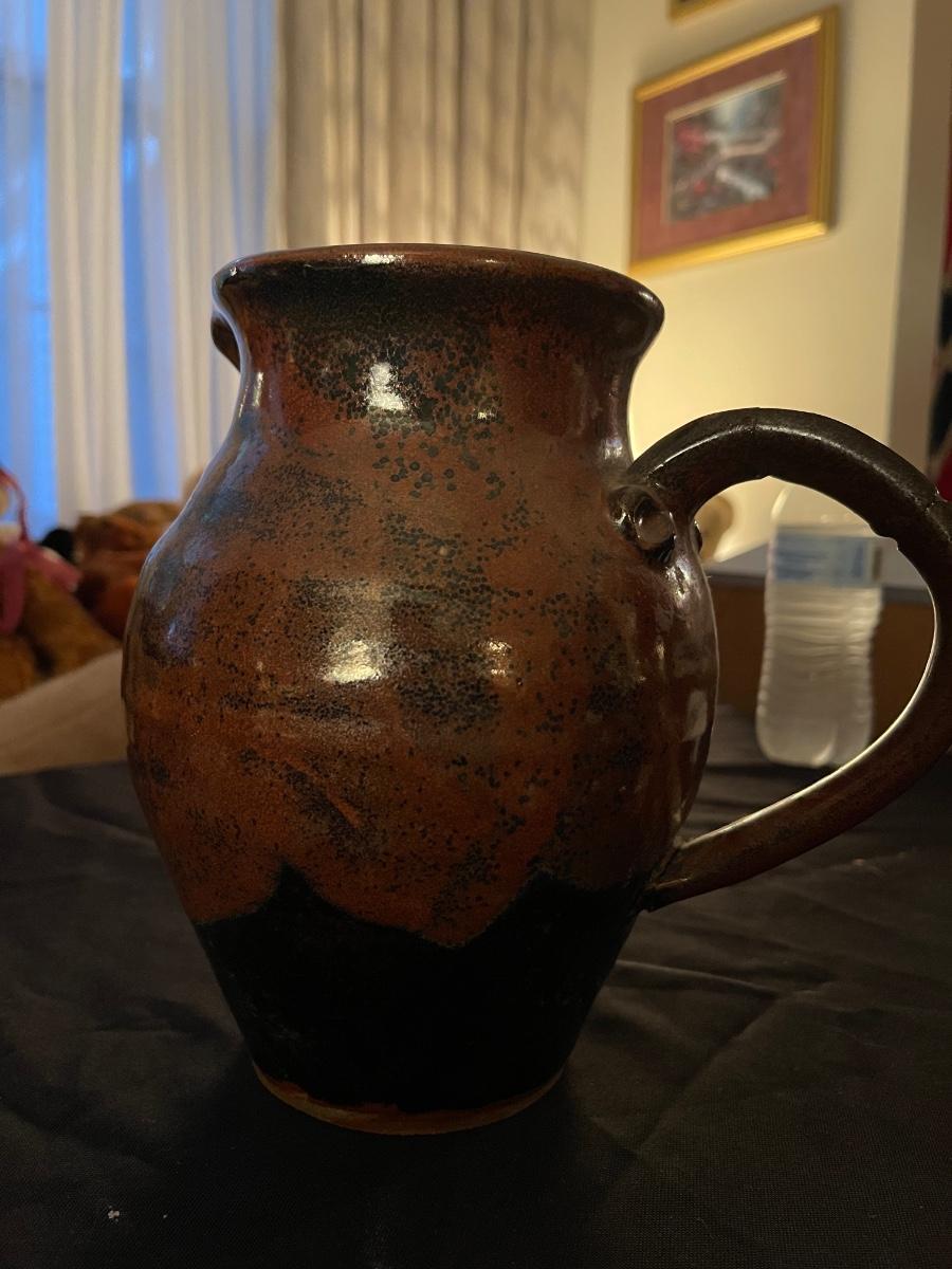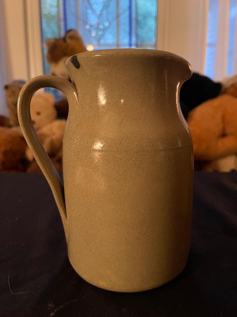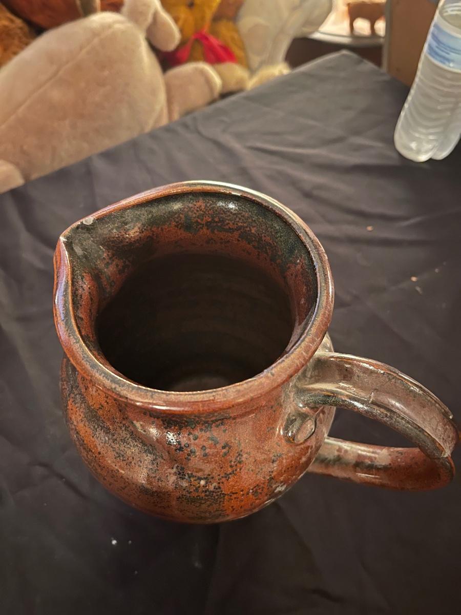 Vintage Moira English Stoneware; Jug (6 x 5"), old pottery vase - (8 x 7"), colored vintage pottery jug signed EB - (8 x 8").