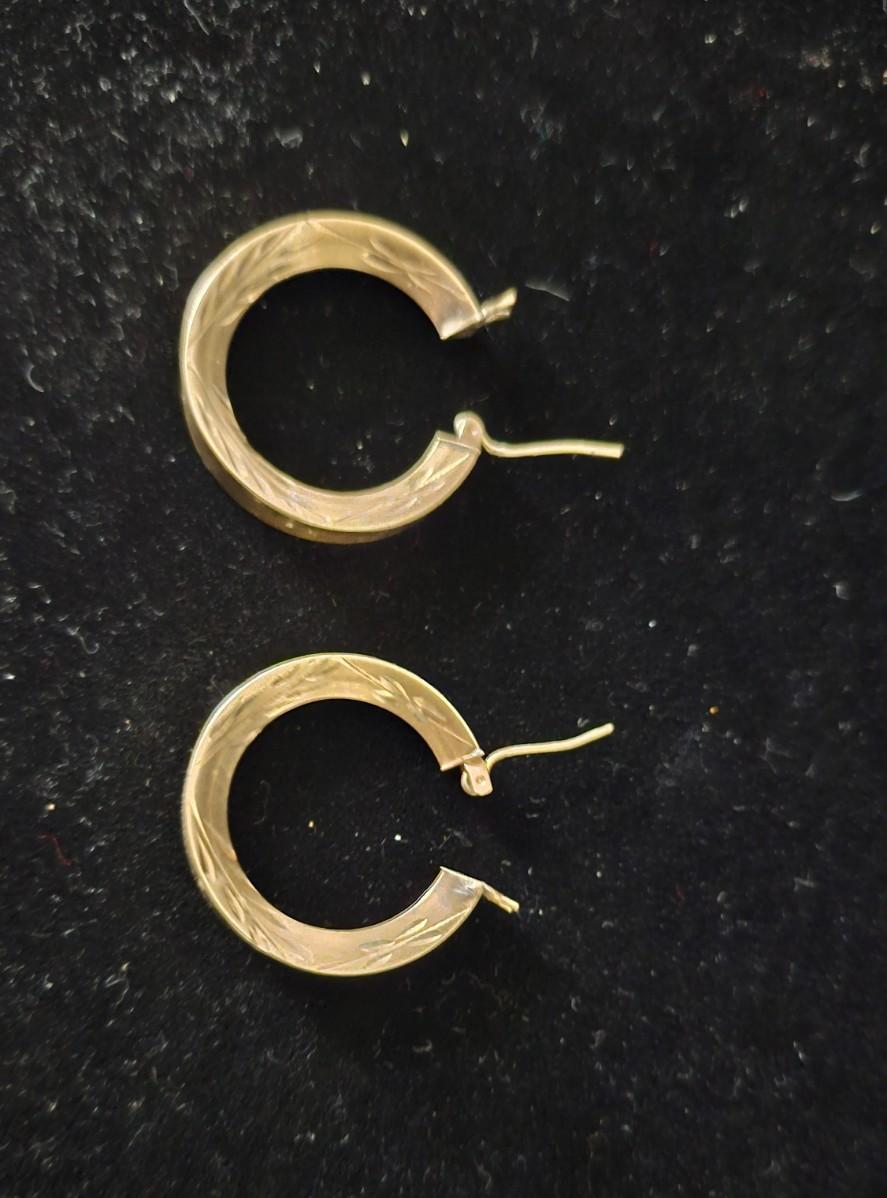These lovely earrings have an engraved pattern on the sides. 3.28 grams weight