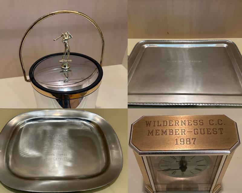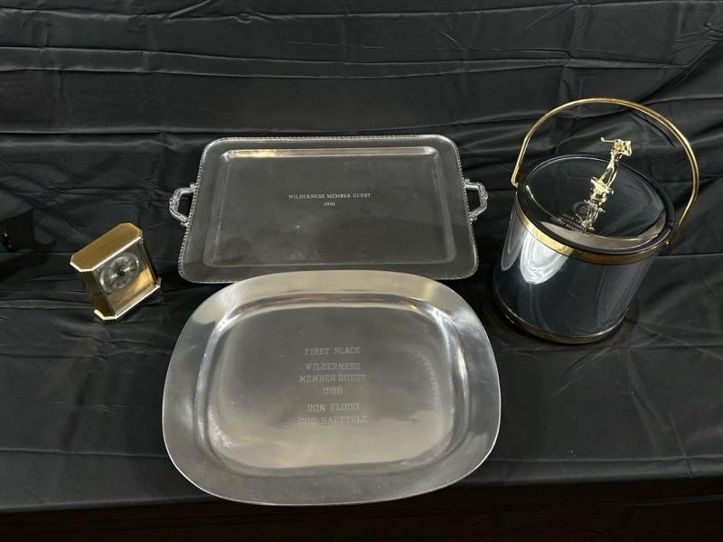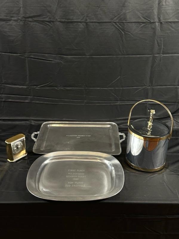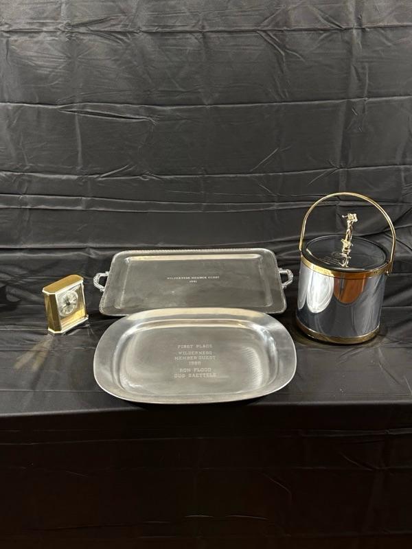 Engraved Home Decor including two plates, one ice bucket and a clock.