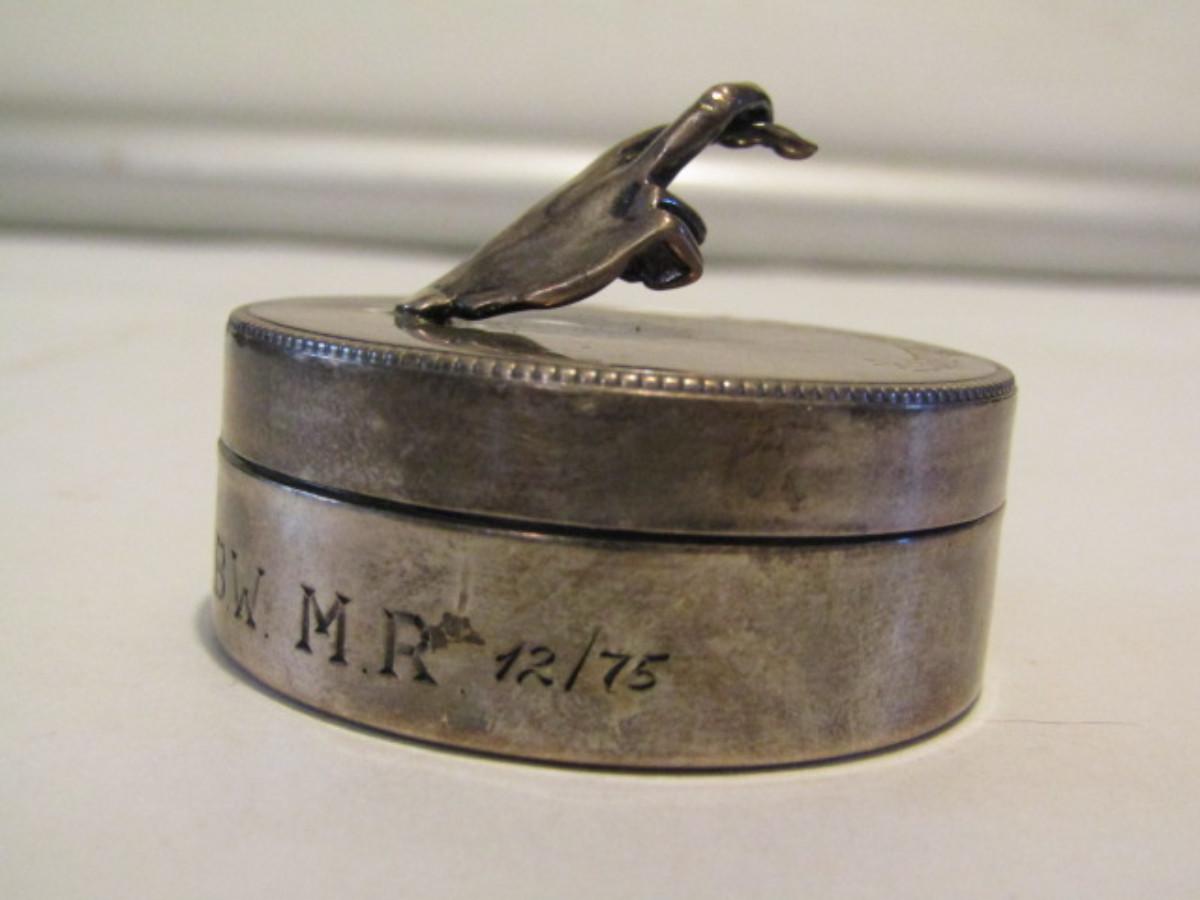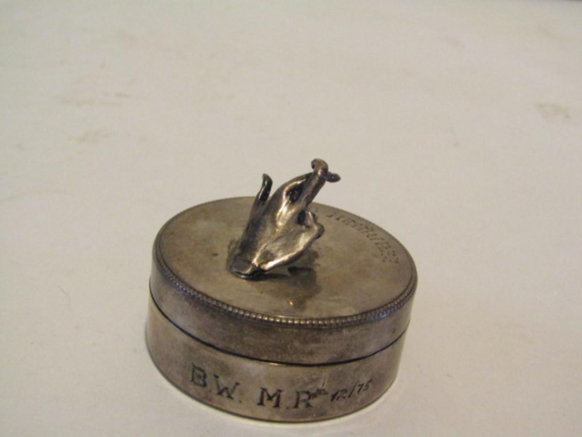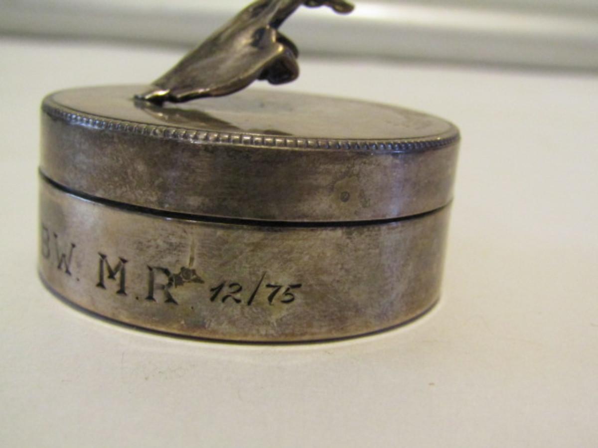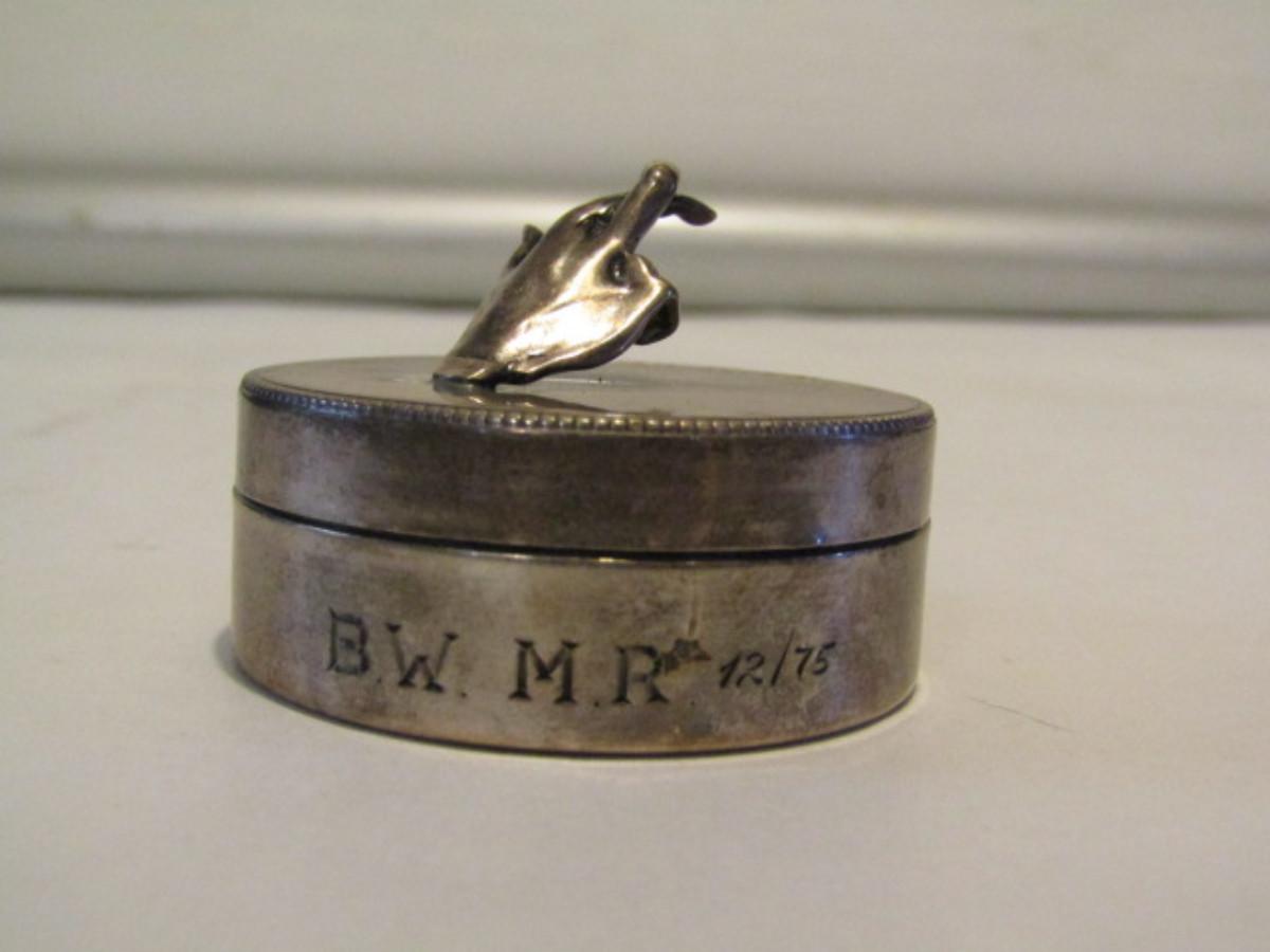 Engraved Sterling Silver Box with 'Crossed Fingers'- Approx 31 Grams
