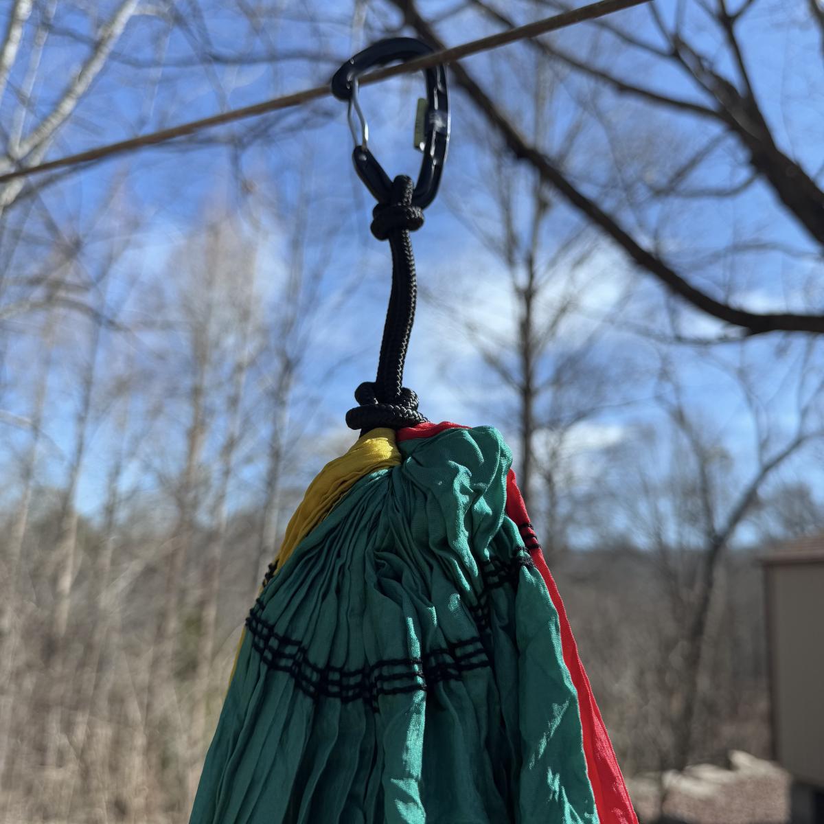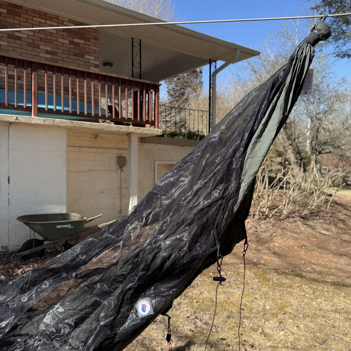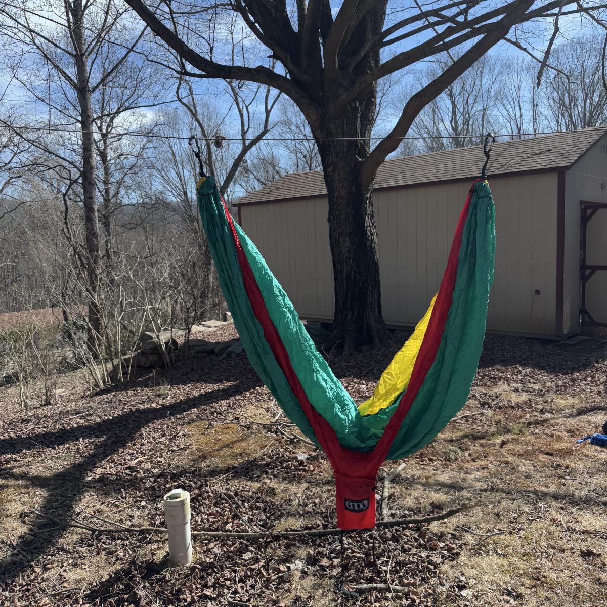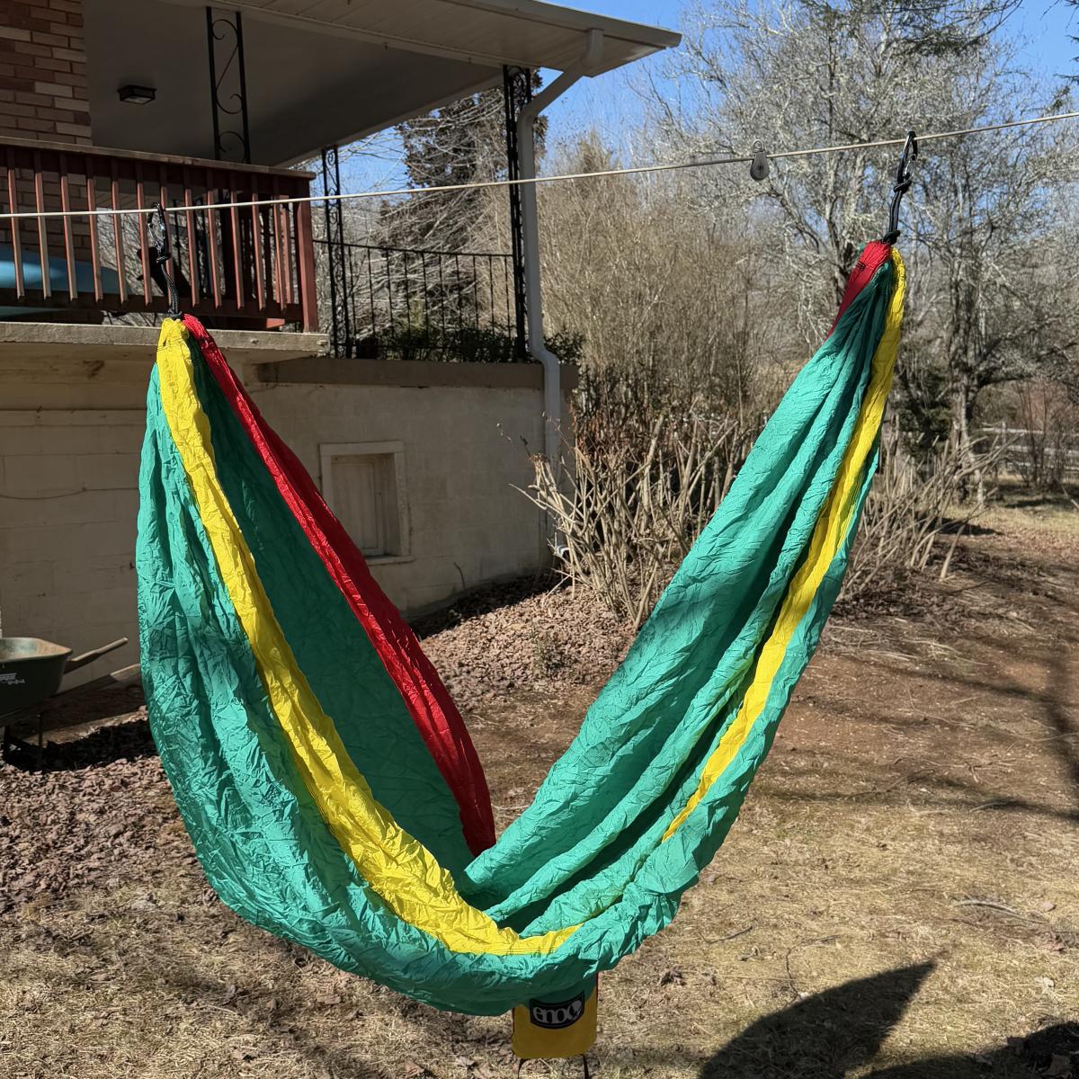 Lot includes one Eno hammock that’s a double nester. It also includes a Warbonnet mosquito net hammock that appears to be new. The Eno double nester measures 6’9” long and 6’4” wide. Both hammocks come in their original bag. Shipping available.