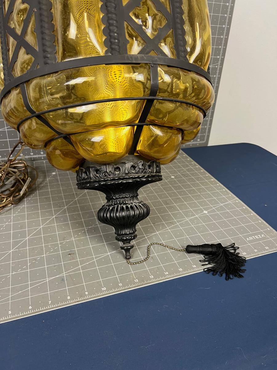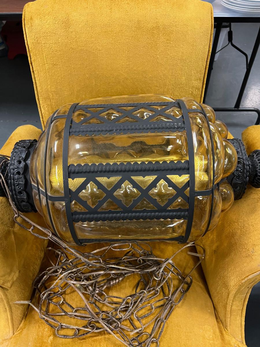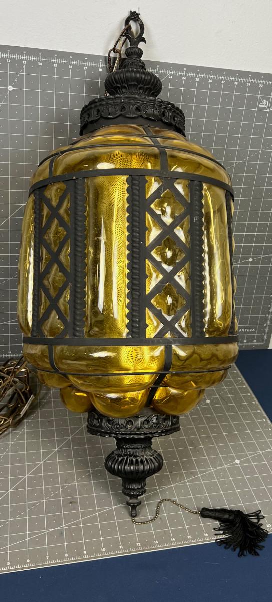 Enormous Amber Glass Swag Lamp