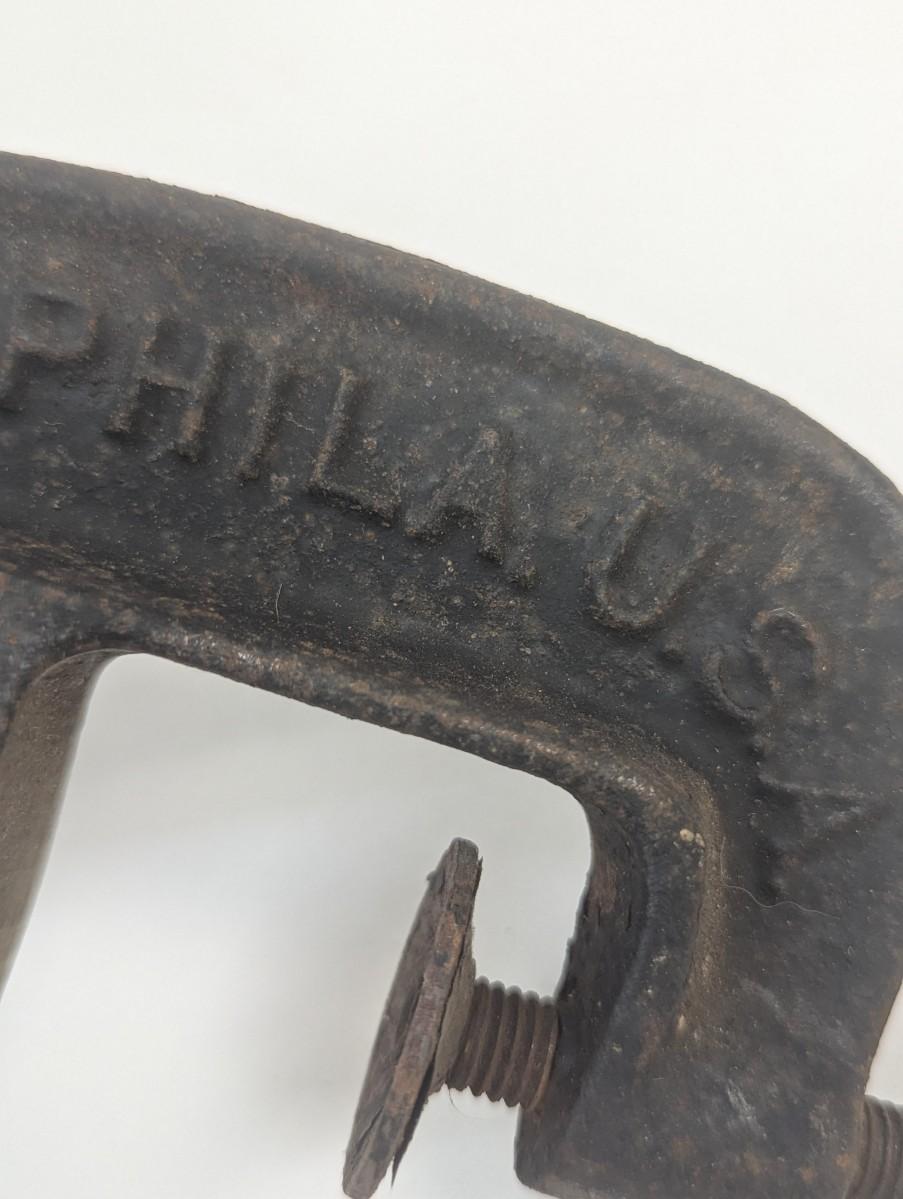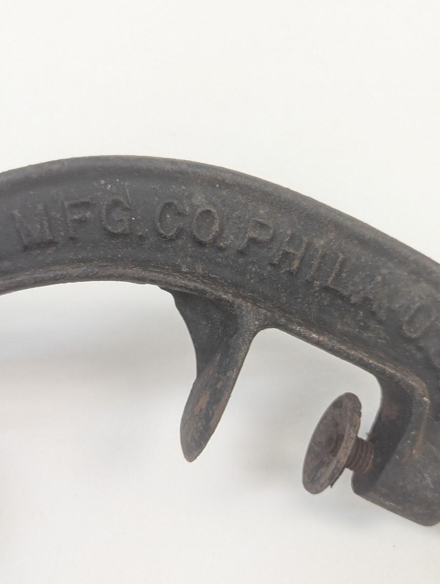 This is a unique and rare Cherry Stoner marking stone, featuring an Americana style and design. The stone is made of metal, and its black color adds to its aesthetic appeal. It was created in the late 1800s. It is a great addition to any antique or primitive collection, and is sure to be a conversation starter.