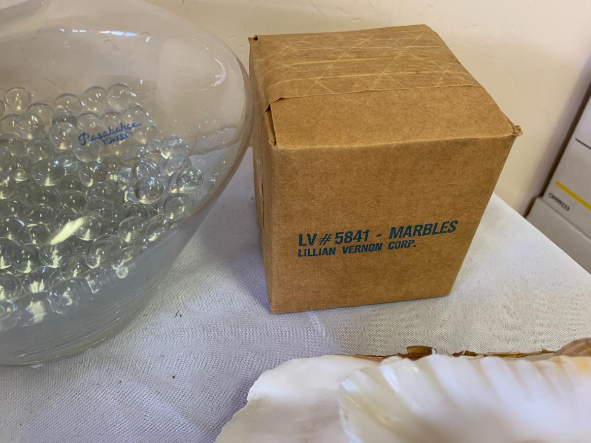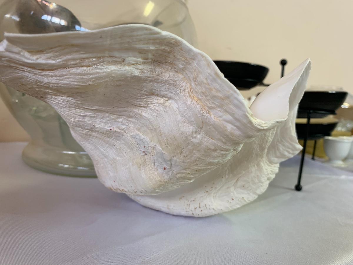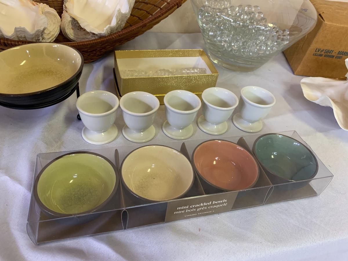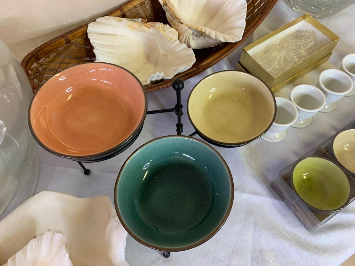 Includes punch bowl with cups and ladles, large shells for serving, wood basket, appetizer bowls etc.