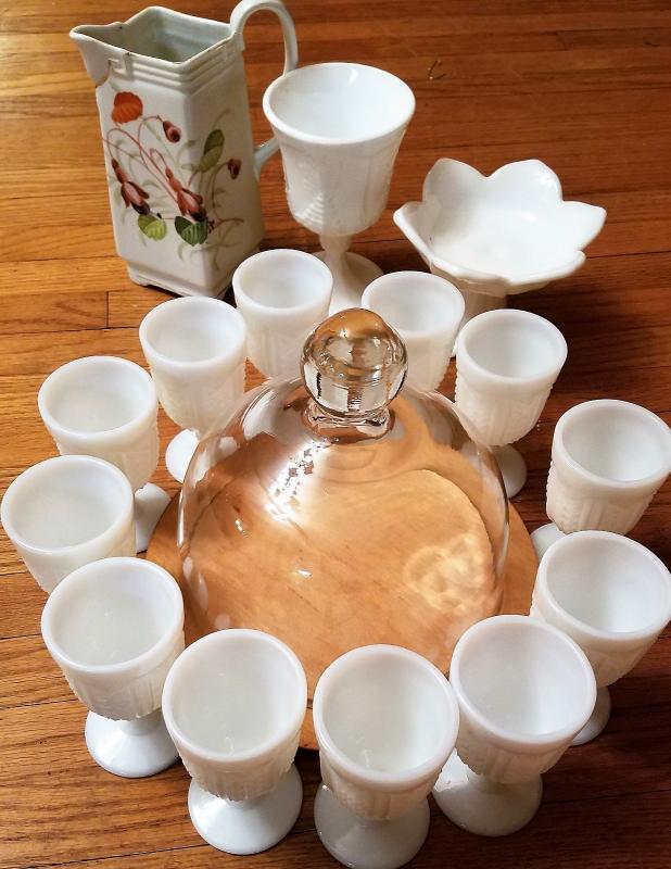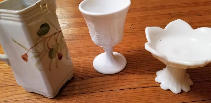 Milk glass, in various sizes a picture a pedestal and a cheese plate
