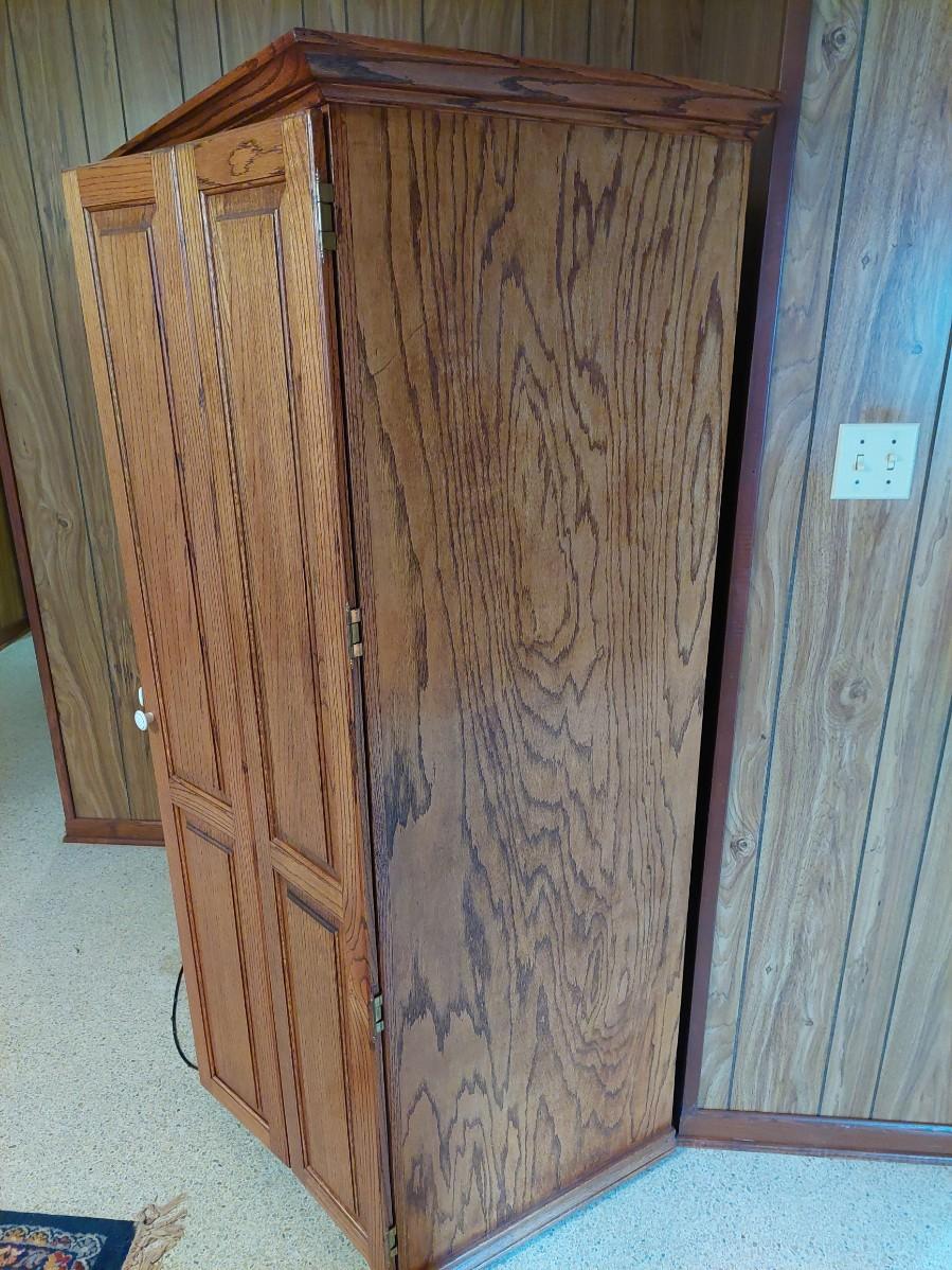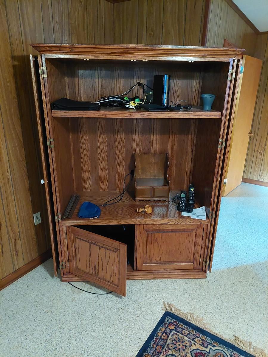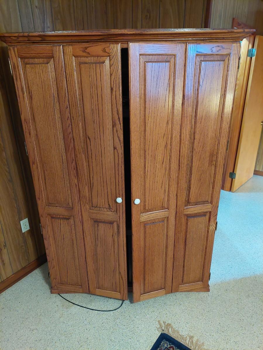 Ver nice entertainment center could be used for alot of things with closing doors. Dimensions are 74 " tall 54" wide &24" deep