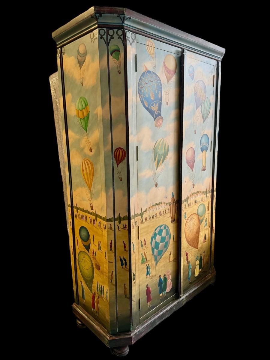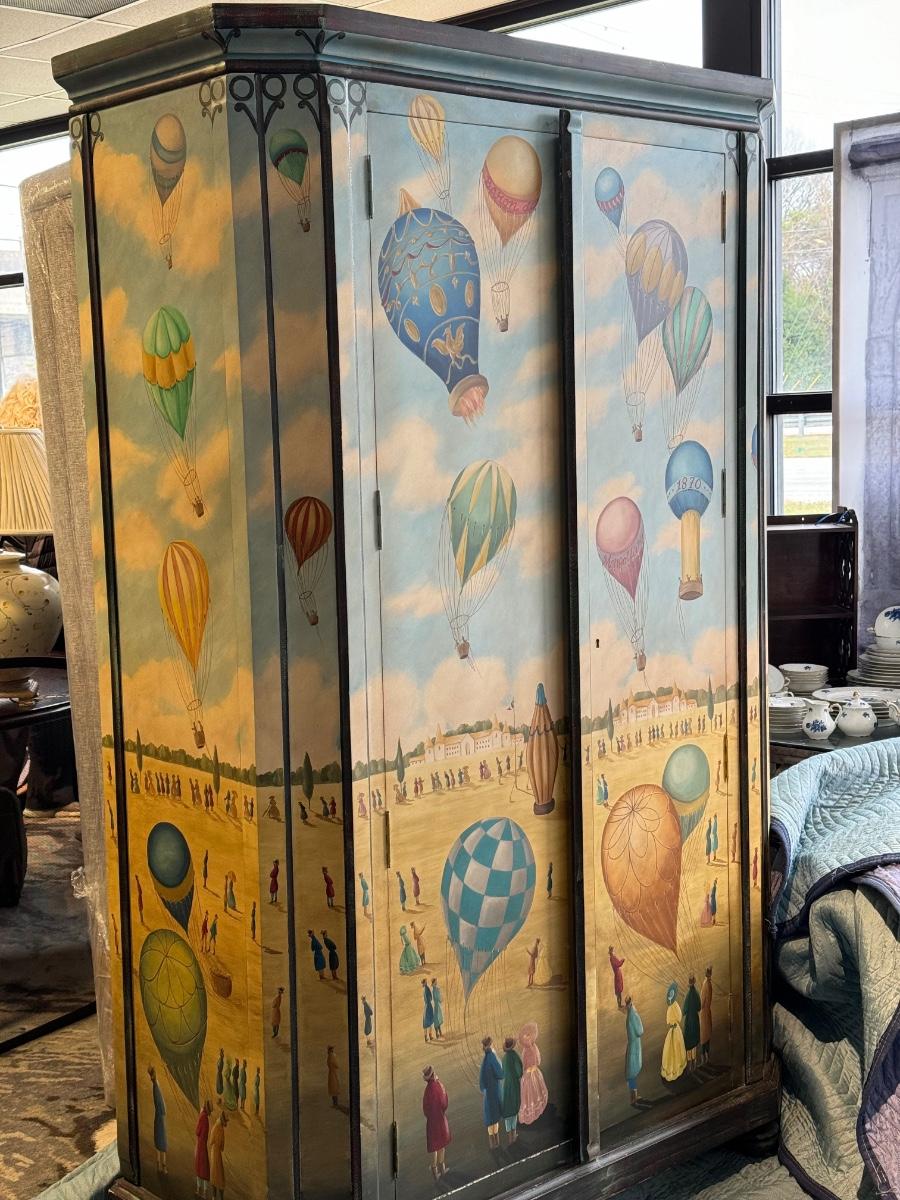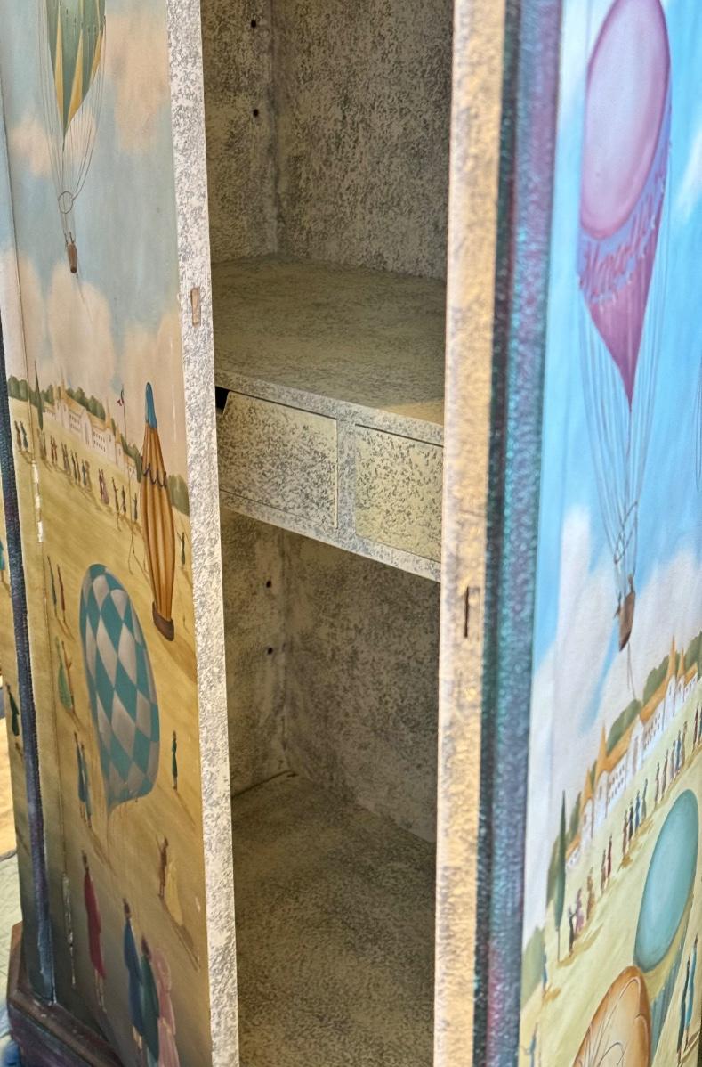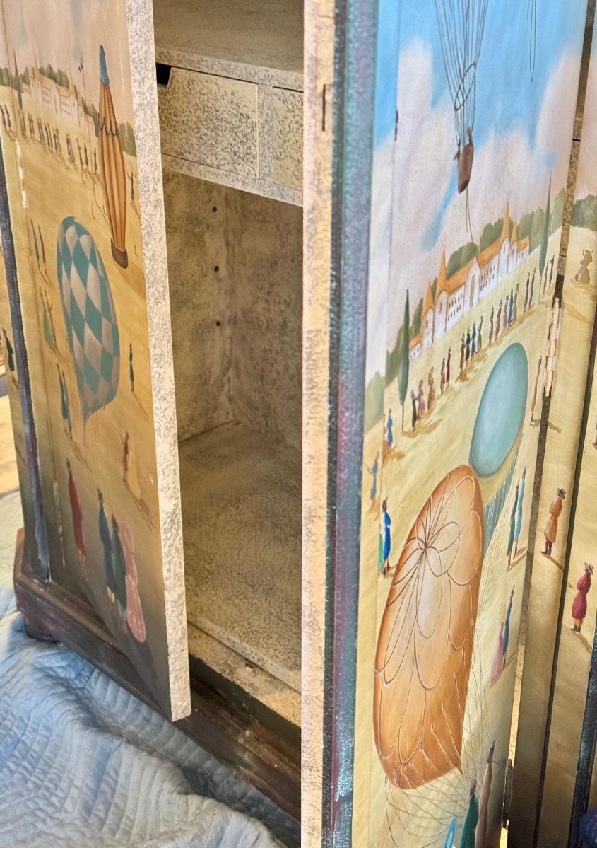 Fun /Playful French Ballooning Scene | Polychrome Decorated Armoire