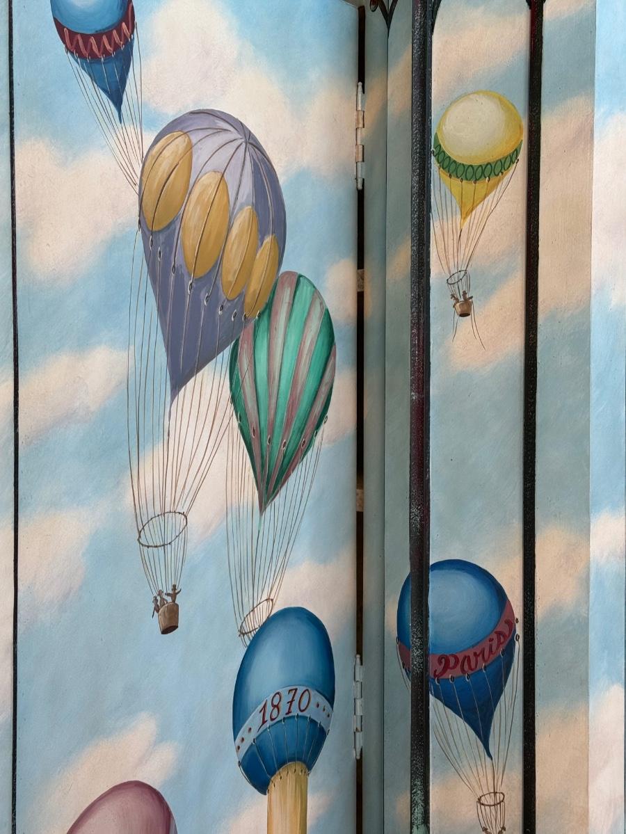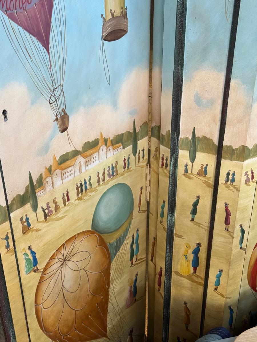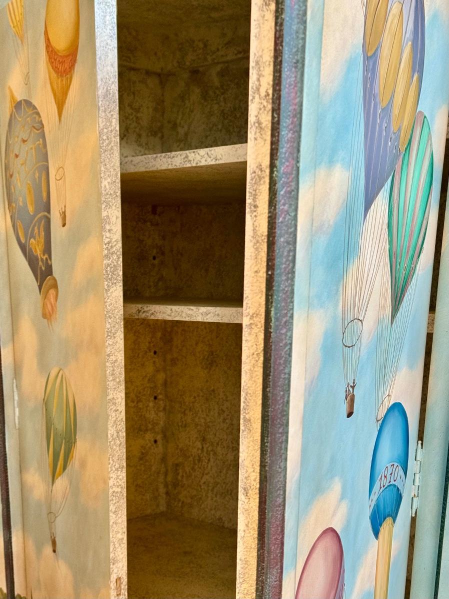 Fun /Playful French Ballooning Scene | Polychrome Decorated Armoire