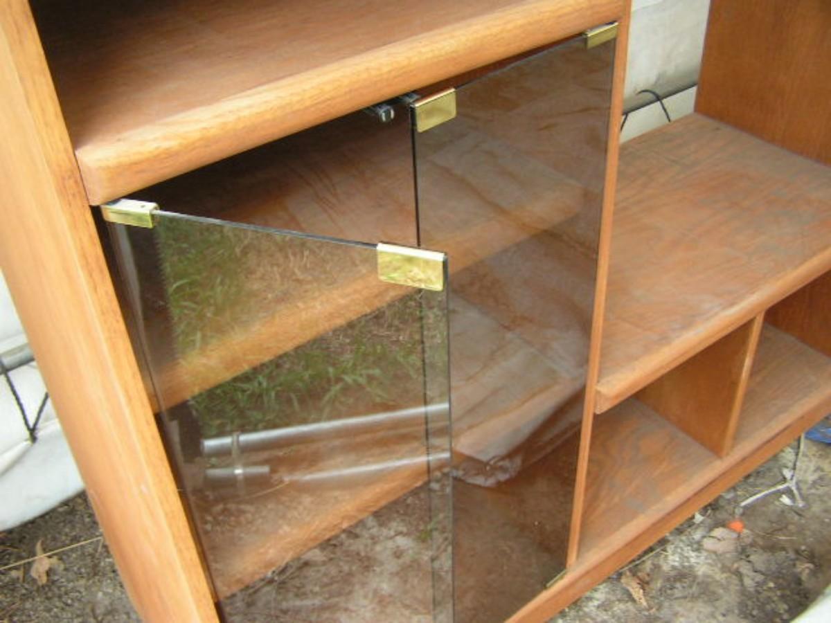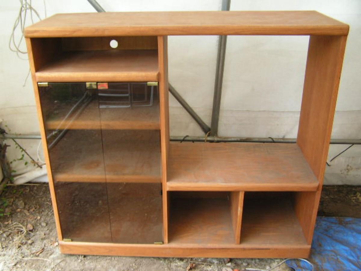 More furniture elsewhere in this sale. Entertainment Center credenza. Has solid oak fascia, real oak veneer plywood panels & shelves, adjustable shelves (NO particle board). Glass doors keep dust off your equipment. NOTE: TV pictured here is NOT included with this lot! Pair this with the TV/video display item#13. This matches items 15 & 16.