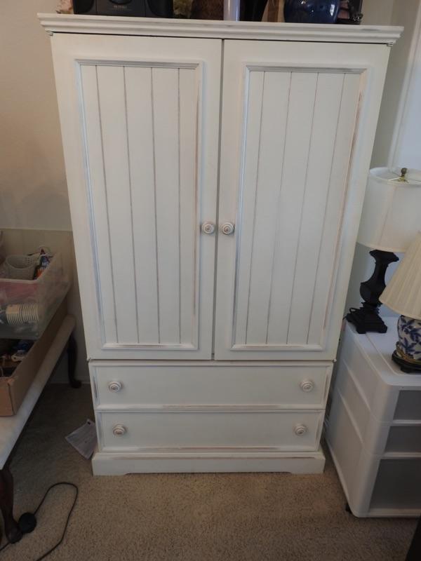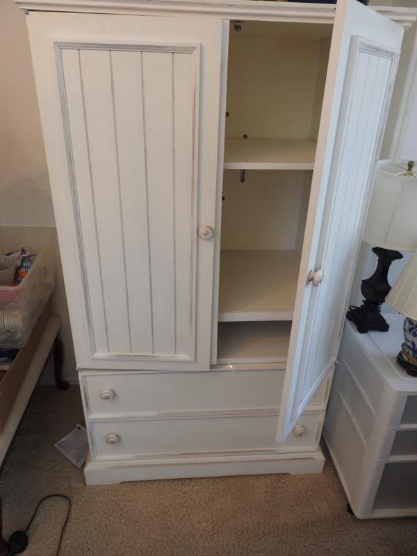 Nice white storage and/or entertainment center. 2 storage drawers. 66" tall 37" wide, 24" deep