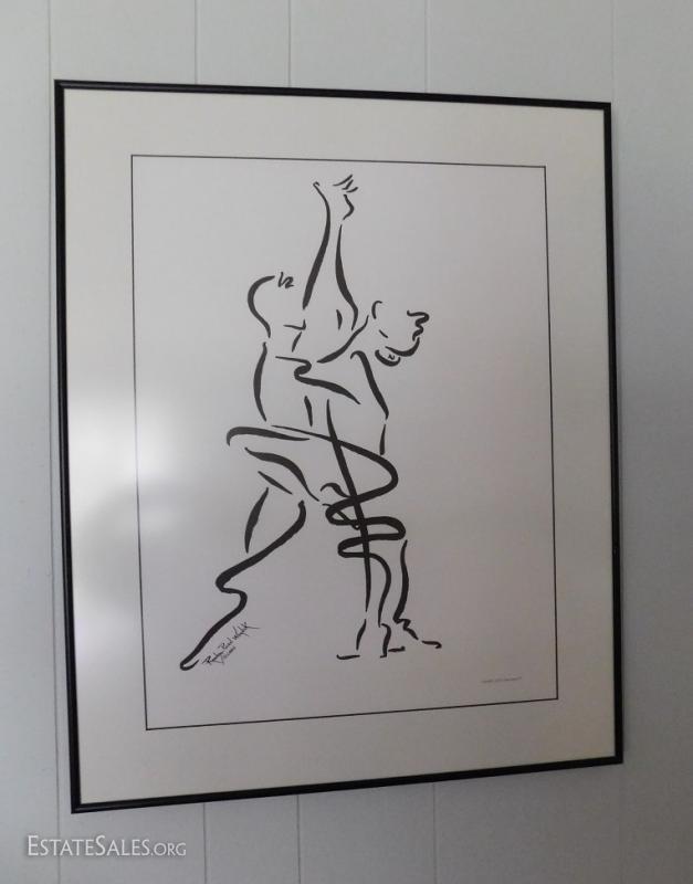 Beautiful and graceful depiction of ballroom dancers in print by Rhonda Polen Wernick. In black and white.