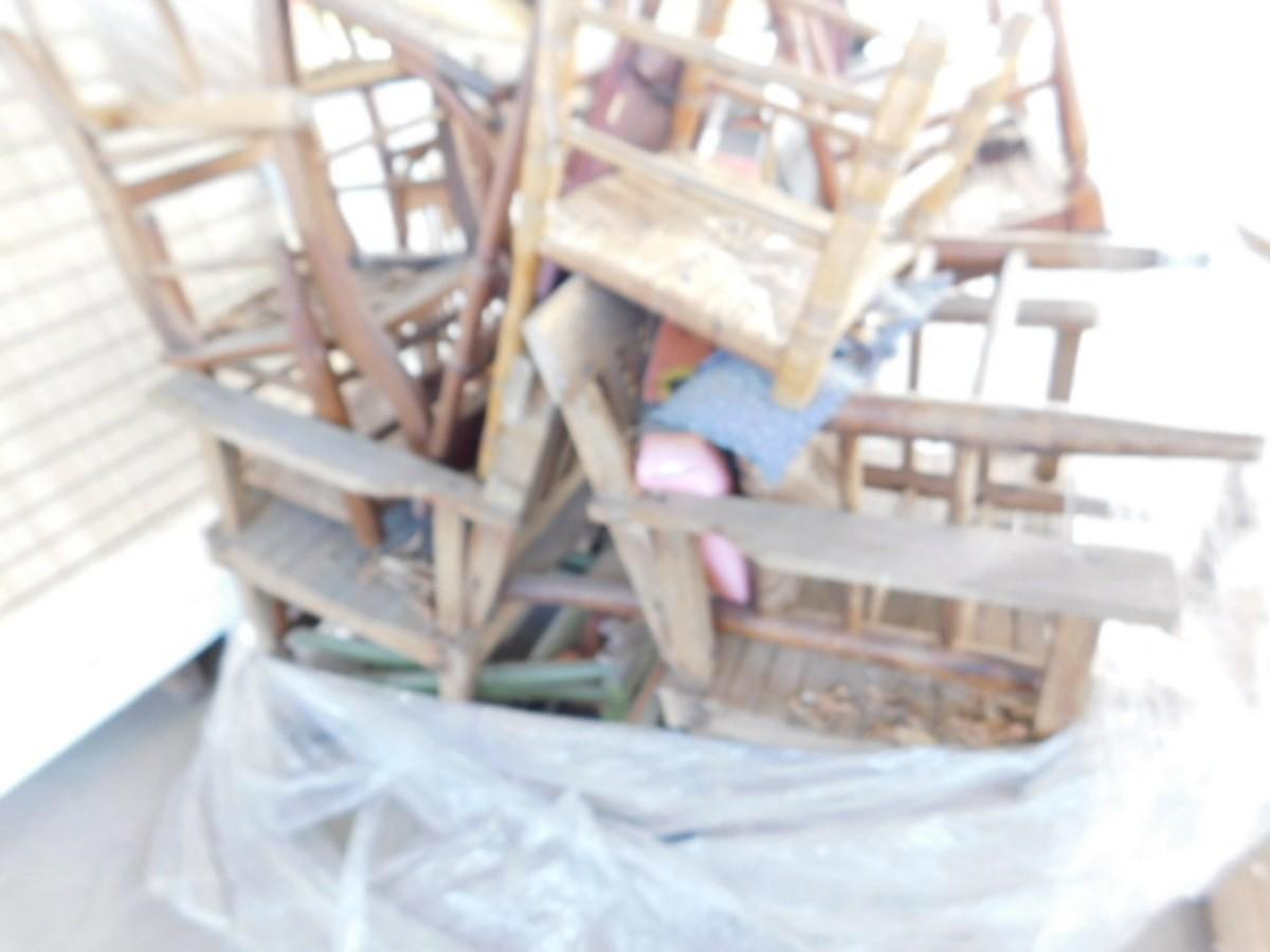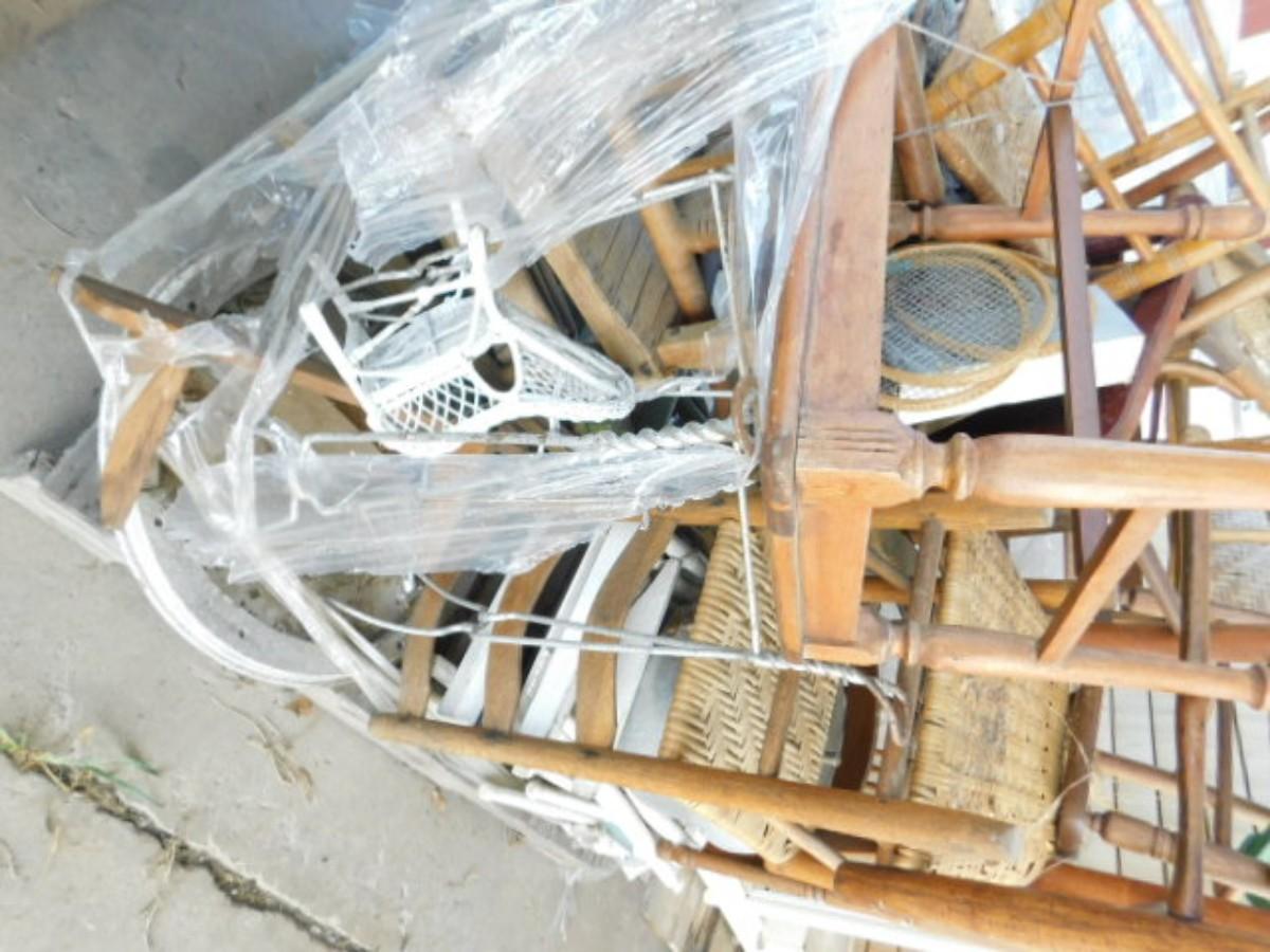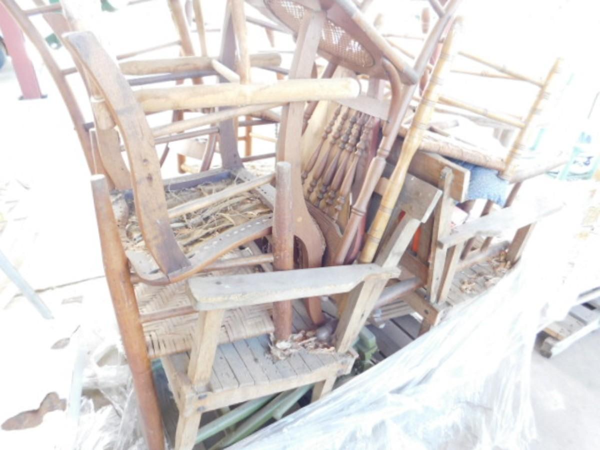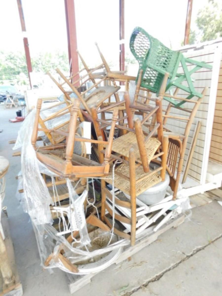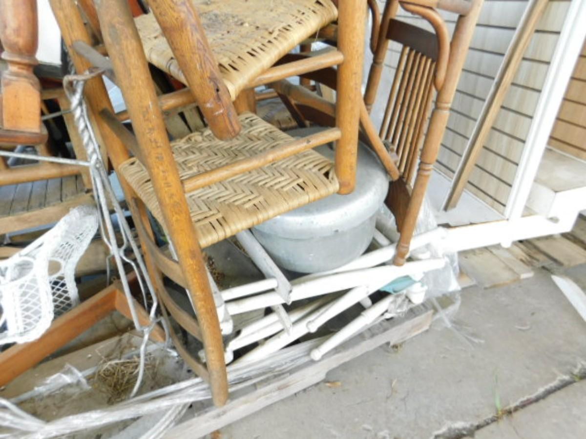Entire Collection of Vintage Ladder-Back Chairs, Shaker Chairs, Porch Rockers, More. Some items will need some repair or new cane seats. Must take entire contents