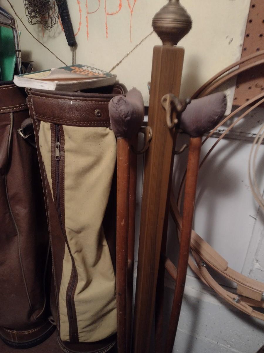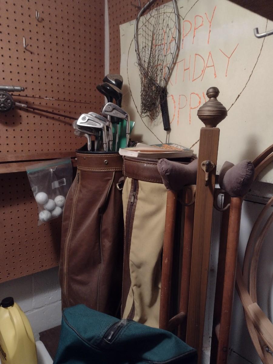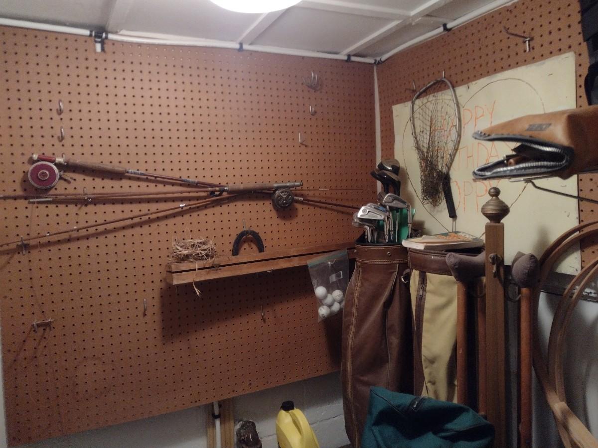 Entire Contents of Sports Theme Room Golf Clubs, Golf Bags, Vintage Fishing Poles and Reels and More (permanent fixtures and shelving are not included)