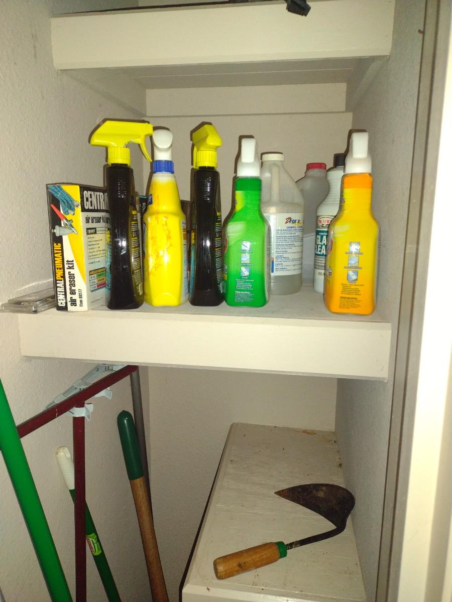 Entire Contents of Utility Closet unknown volume in each container of cleaners.