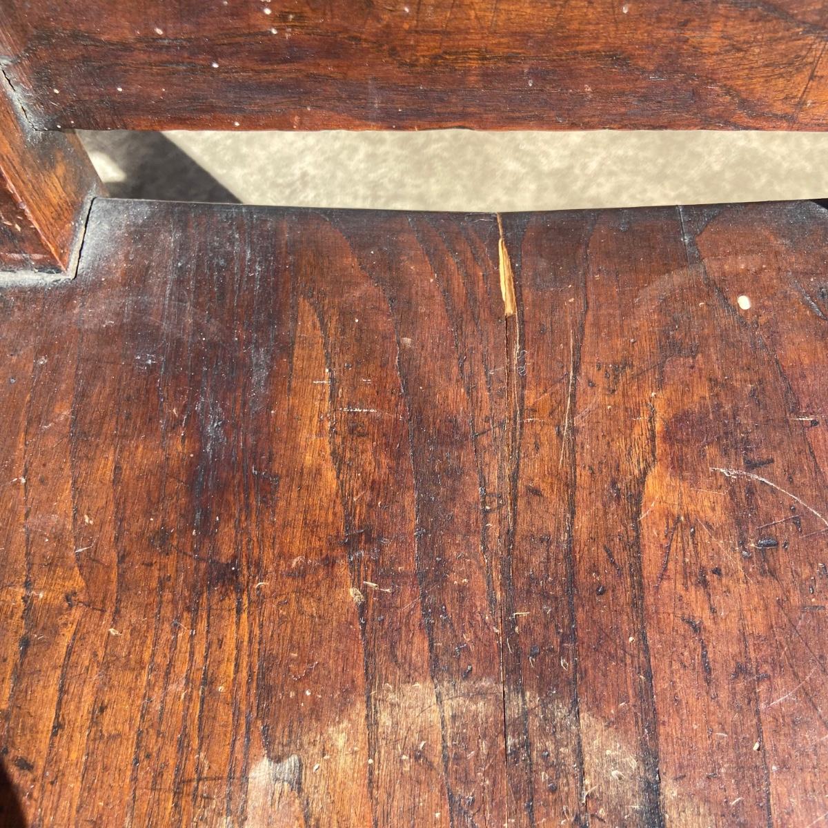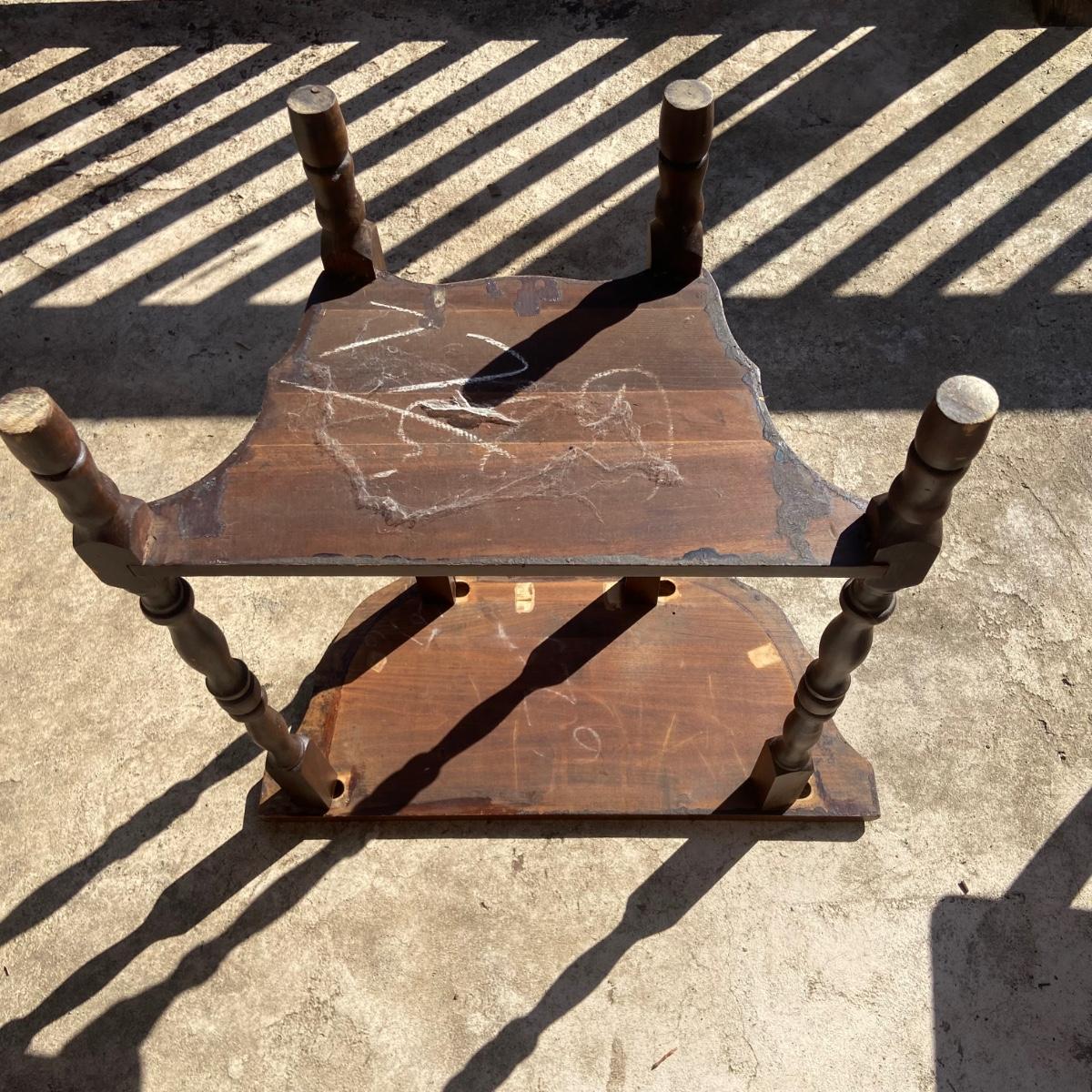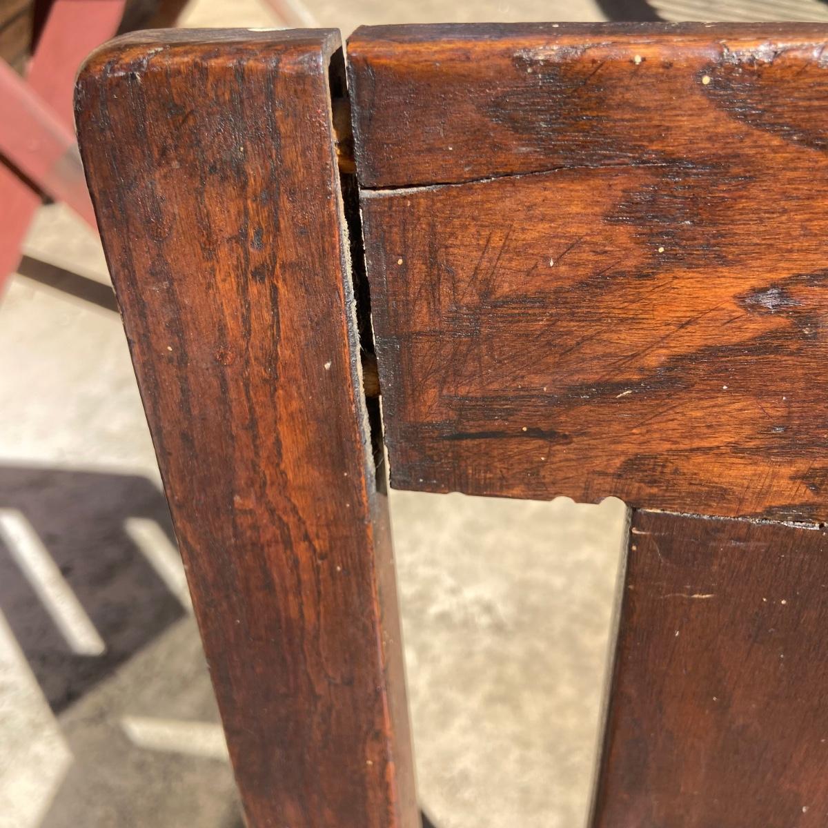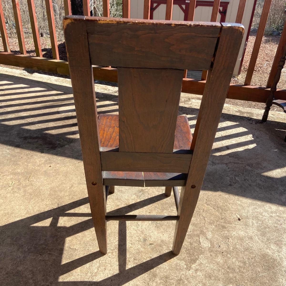 In this lot we have a wooden half moon entry table that measures 23” x 11” x 25”H. Also in this lot is a small wooden chair that measures 12” x 13” x 28.75”H with a seat height 14.5”. There is a big crack down the seat, and a couple dents. See pictures for details. Local pickup only.