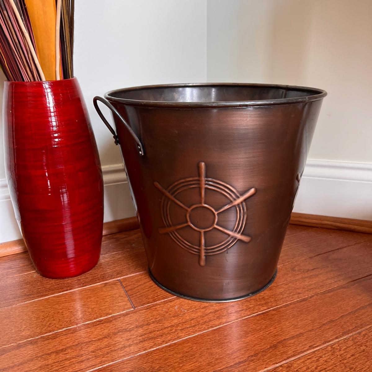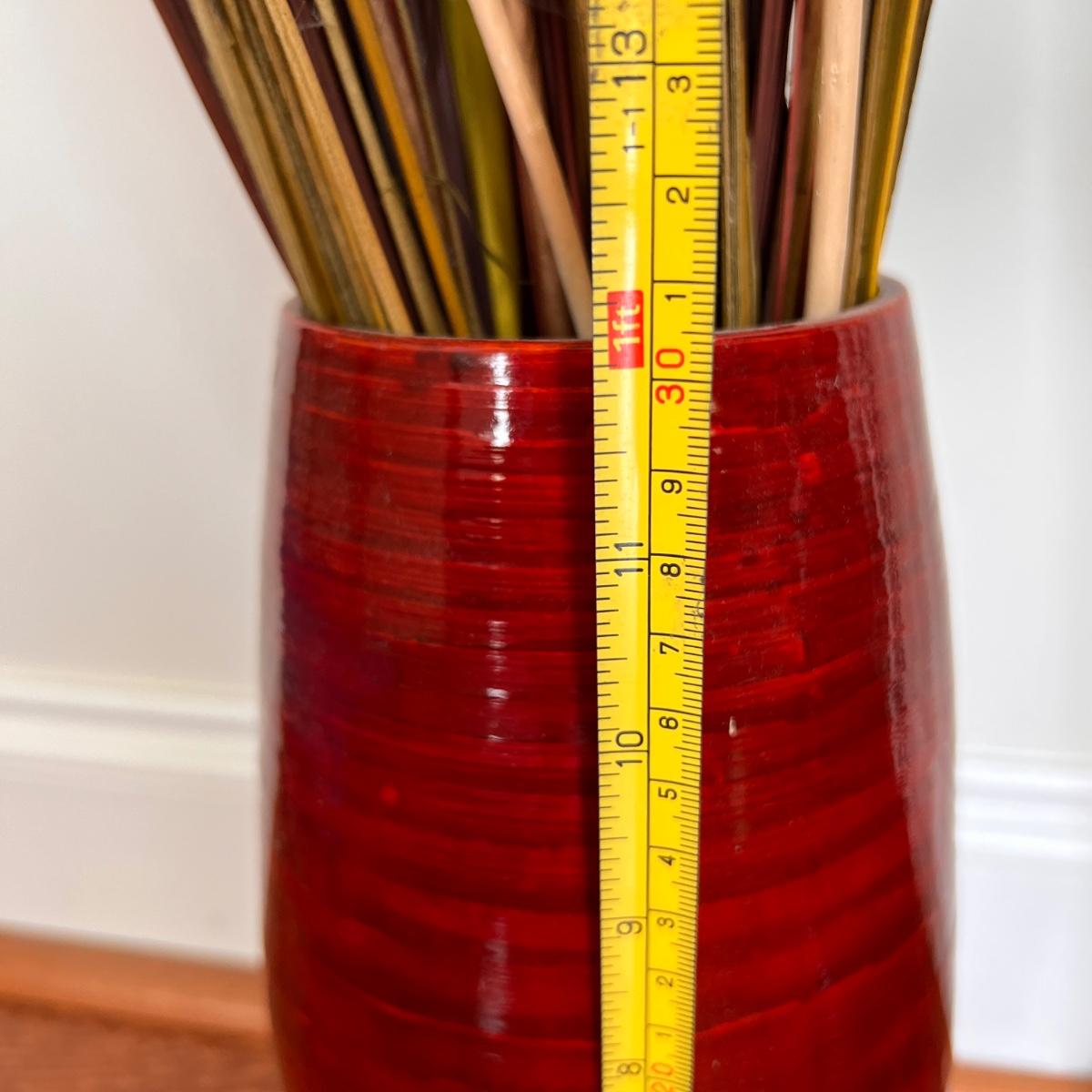 Metal coat stand with umbrella storage, 2 tall dried flower wooden vases, 1 brushed metal bin can be used as umbrella storage.
