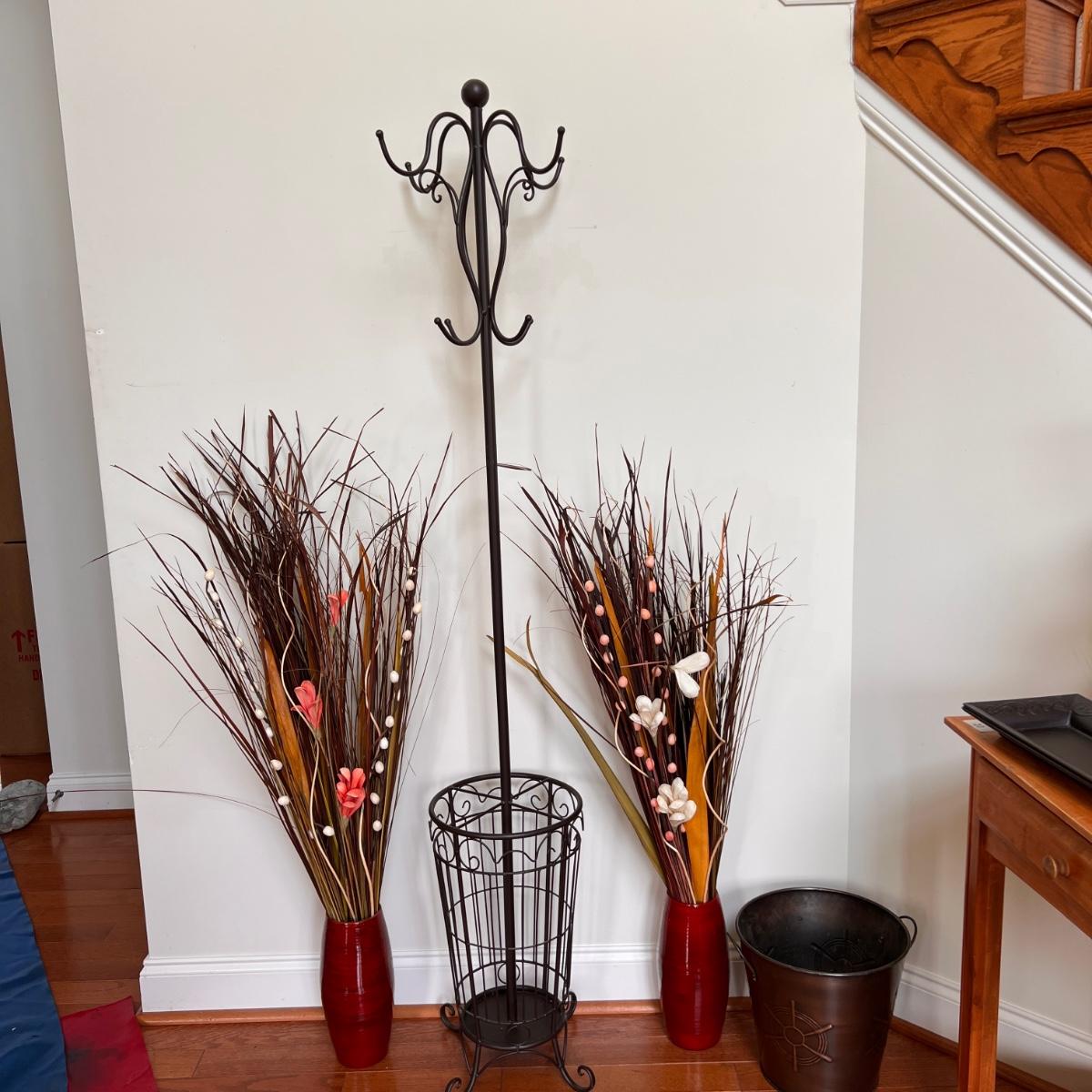 Entry Way Hall Home Decor - Coat Rack, Umbrella Stand, Decorative Floral Vases