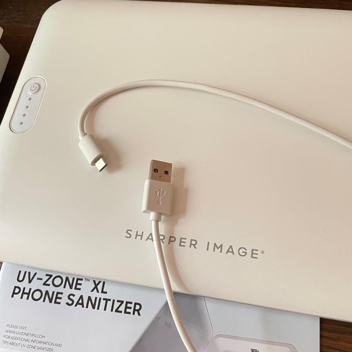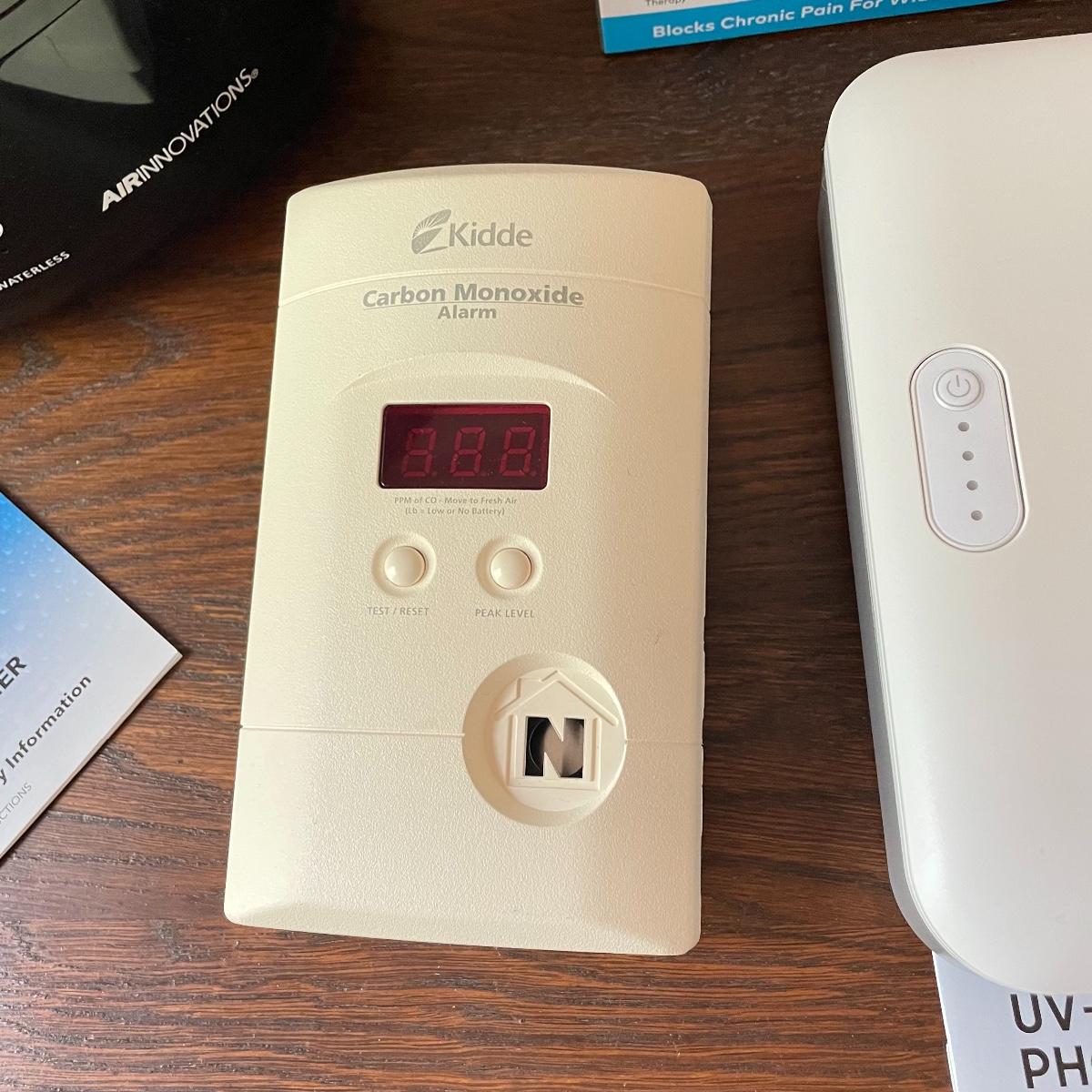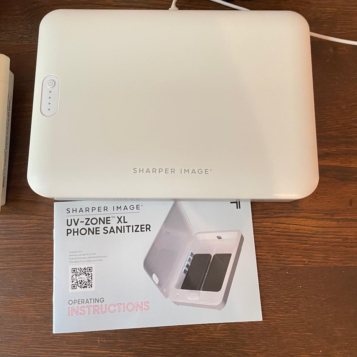 Sharper Image UV Phone Sanitizer, comes with cord, but needs an adapter. Prozone 6.25” tall Air Purifier. New-in-box Quell Wearable Pain Relief Technology, Air Innovations Clean Mist Sensatouch Humidifier and Kiddie Carbon Monoxide Alarm. All items turned on when tested. Local pick up only.